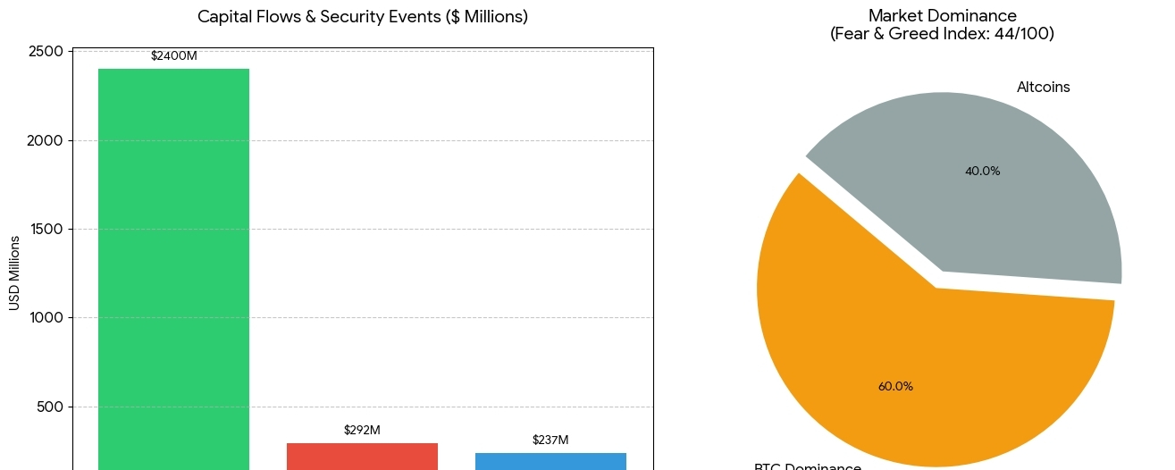 Dominance Shift: BTC dominance has peaked at 60%, signaling that the "ETF era" is currently sucking the oxygen out of the altcoin room.
