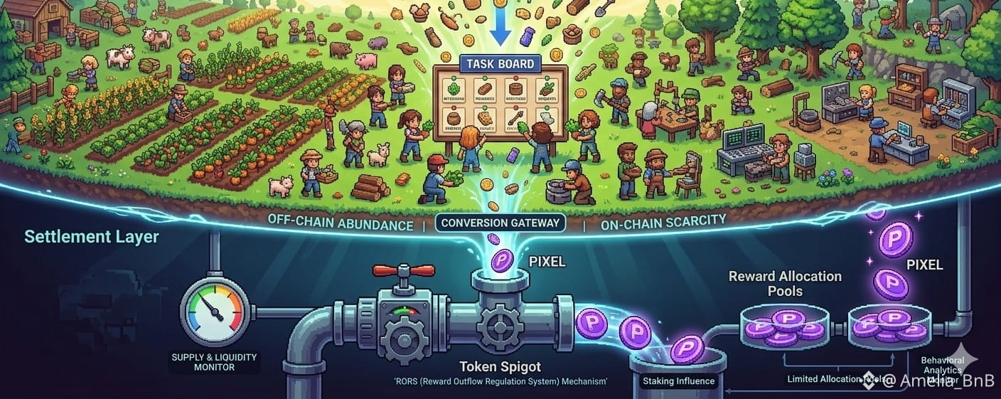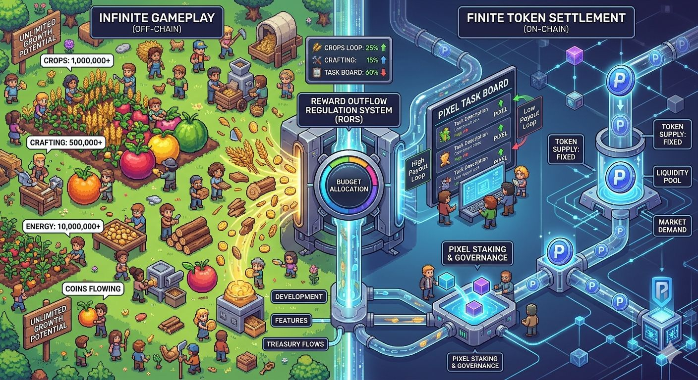 In the case of Pixels, there are indications that mechanisms similar to a Reward Outflow Regulation Systemoften discussed in the community as RORSmay help maintain this balance. These systems quietly adjust reward flows based on overall economic conditions.