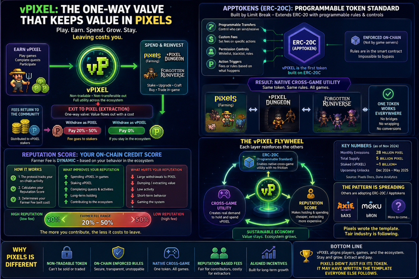 this is what makes Pixels genuinely different from the multi-game ecosystems that came before it. most tried to connect games through bridges or shared currencies that required manual conversion. Pixels built the connection into the token standard itself.