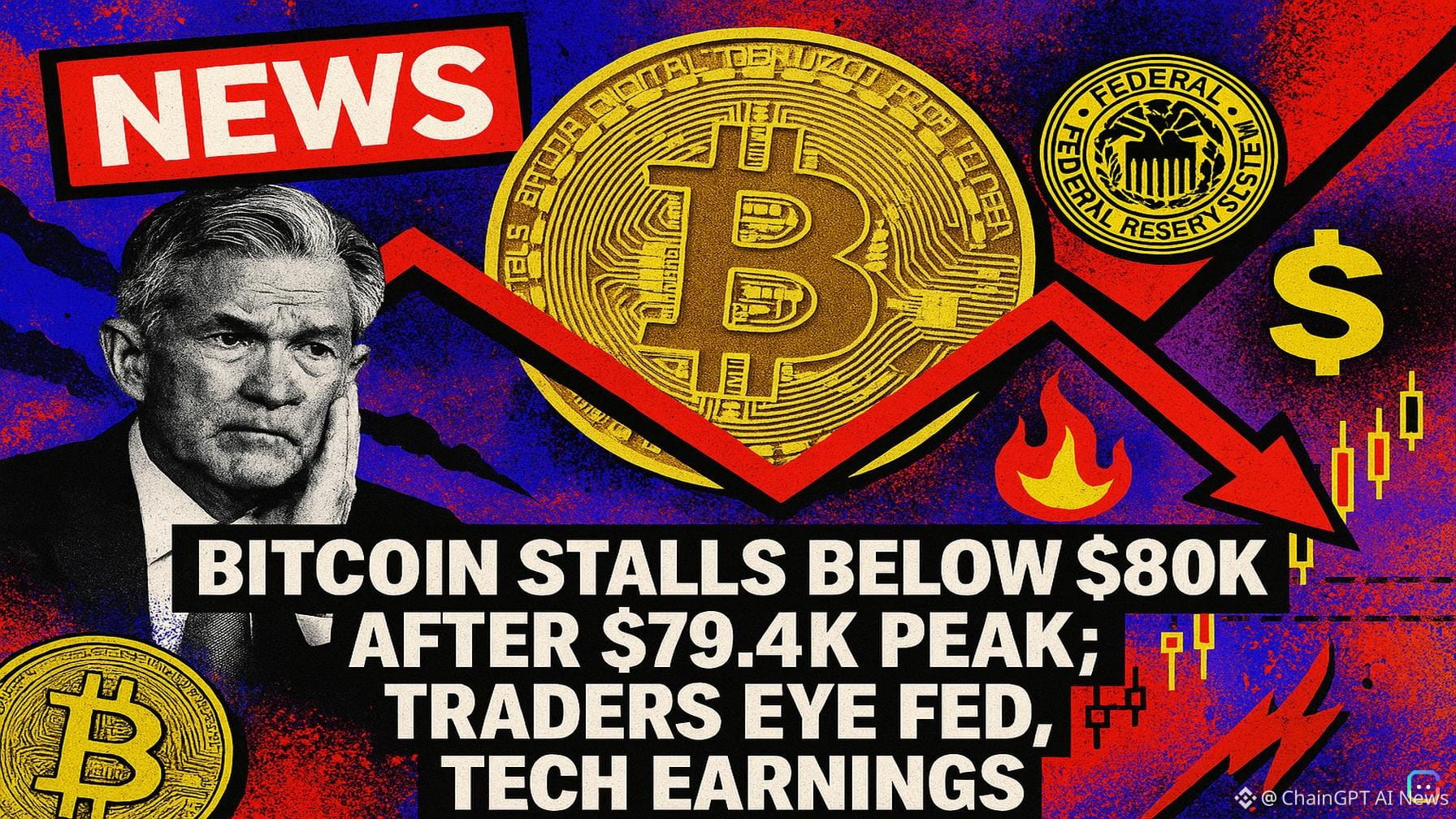 Bitcoin cooled off after hitting a 12-week high, as sellers stepped in just below the $80,000 mark. What happened - Bitcoin briefly reached $79,399 around 09:00 IST overnight before reversing during Asian hours. As of Monday morning it was trading near $77,705, down about 0.4% over 24 hours (the article’s opening price: $77,647.81). - Major altcoins slipped alongside BTC: Ether -2.4% to $2,329, Solana -1.9% to $86, and BNB -1.2% to $630. - The rally that pushed bitcoin to its highest level since Jan. 31 unraveled by mid-morning Singapore time after the price hit the $79,399 rejection point. Why it moved - The initial risk-on move was sparked by an Axios report that Iran offered a proposal to the U.S. to reopen the Strait of Hormuz, with nuclear talks delayed until after a U.S. naval blockade is lifted. Asian markets ran with the headlines: the MSCI Asia Pacific Index climbed 1.7%, emerging-market equities hit record highs, Taiwan Semiconductor surged 6% to a record, and Brent crude pared earlier gains to trade around $106.50 a barrel. - Bitcoin followed the broader risk rally briefly, but momentum stalled at the $79,000 area. BTC Markets analyst Rachael Lucas noted that $80,000 is a common breakeven point for recent buyers — a level that historically attracts selling as traders who were underwater rotate out of positions. Market structure and the outlook - Bitcoin is up about 16% in April and was on pace for its first double-digit monthly gain since May 2025. - Institutional flows remain notable: Bloomberg reported that Strategy bought $3.9 billion of bitcoin this month, the firm’s largest monthly accumulation in a year. - Derivatives paint a mixed picture: seven-day funding rates on perpetual futures across major exchanges are still negative at about -0.13% (Coinglass), which implies shorts are paying longs — a structure that can fuel a squeeze if spot can hold above $79,000, a level that has now been rejected three times in eight sessions. - Macro and earnings risk loom large this week: policy decisions from the Federal Reserve and the European Central Bank, plus megacap tech earnings (including the four largest U.S. companies by market cap), could provide the catalyst BTC needs to break the range. Absent such a trigger, repeated rejections at $79,000 may come to define the near-term trading band rather than presage a breakout toward $80,000. Bottom line: Bitcoin’s recent push toward $80K stalled at a predictable selling zone. Traders will be watching macro headlines and megacap earnings for the next directional shove; otherwise, the $79K-$80K area looks likely to remain a key resistance in the short term. Read more AI-generated news on: undefined/news