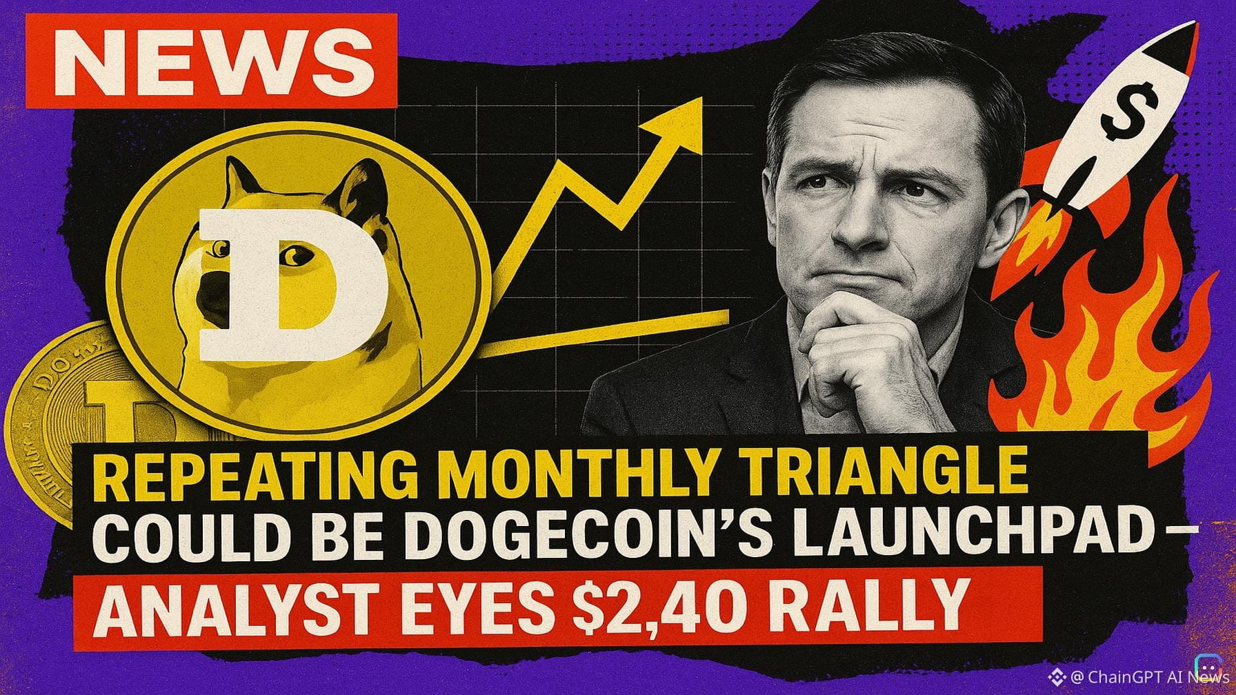Crypto analyst Trader Tardigrade says a repeating monthly chart pattern could be the key to Dogecoin’s next big move. On the Dogecoin monthly candlestick chart — which stretches back to 2014 — Tardigrade highlights a descending triangle that appears to form at the end of each major market cycle. That structure, he argues, has behaved almost mechanically: price compresses into the triangle’s apex, then erupts. Where Dogecoin stands now - Dogecoin is trading below $0.10 in late April 2026, well under its recent cycle peak of $0.48 and largely out of the spotlight for many traders. - In 2024 DOGE briefly broke above the triangle, then fell into a correction from late 2024 that has now brought price back to retest the triangle’s apex — the tightest, most compressed point of the formation. Why that matters Tardigrade points out two prior instances of the same pattern: - In 2017, DOGE compressed into the tip of the formation before launching its first major bull run. - In 2020 the coin again coiled into the apex and then exploded into the 2021 rally that peaked around $0.73. Now, in 2026, the analyst sees a third convergence where price is once more testing the triangle’s tip. His projection is bullish: if Dogecoin bounces cleanly from the apex, the rally could carry DOGE into completely new price territory — he models a run as high as $2.40 if the move plays out in full. Caveats and market context Tardigrade’s pattern is clear, but he and other analysts caution that macro market conditions will influence how the setup unfolds. Previous DOGE surges coincided with broad crypto bull markets; Bitcoin’s trend is particularly important. At the moment Bitcoin has been trying to stabilize above $78,000, and recent upticks in capital flows have been noted — factors that could help or hinder a potential Dogecoin rally. The fundamental backdrop for DOGE in 2026 is also materially different from prior cycles, so history may not repeat exactly. Chart credit: @TATrader_Alan on X. Featured image: Unsplash; chart: TradingView. (Neither the analyst nor this article constitutes investment advice.) Read more AI-generated news on: undefined/news