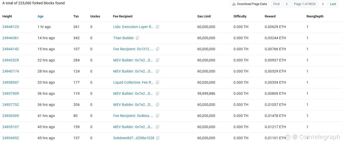 Ethereum generally has less than 10 reorgs a day. Source: Etherscan