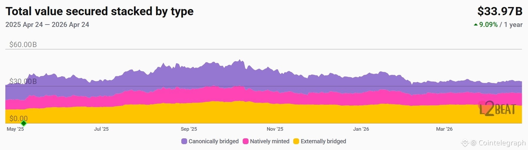Rollups secured almost $34 billion worth of assets on April 24. Source: L2Beat