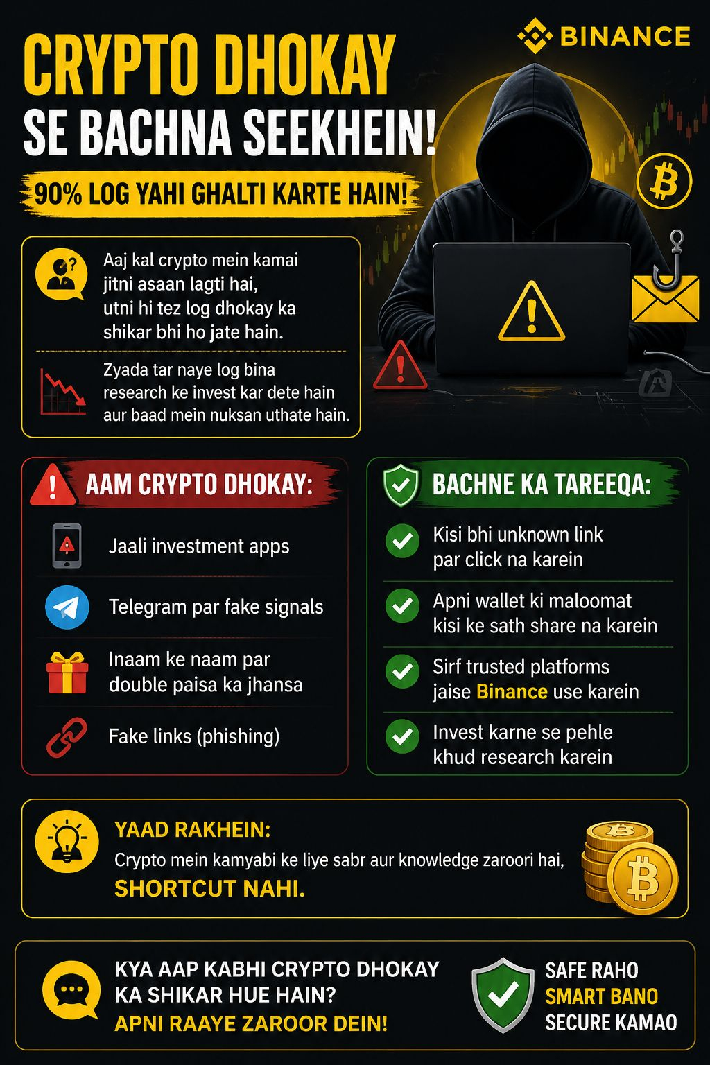 ✔️ Only use trusted platforms like Binance.