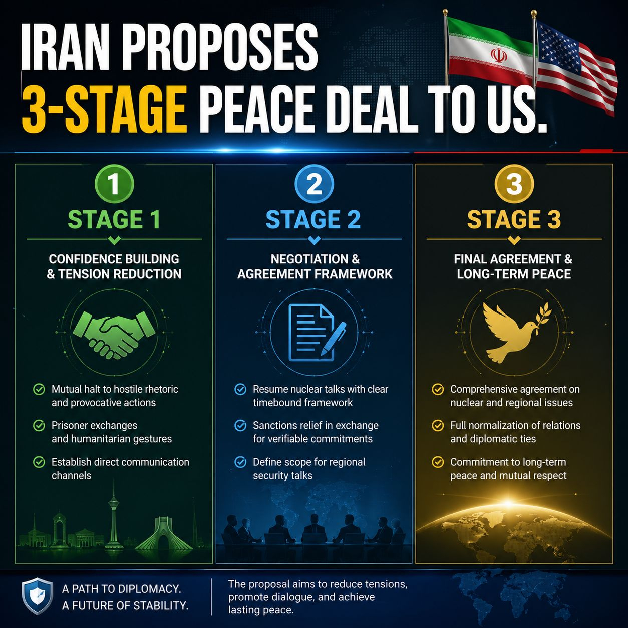 While Iran's 3-stage peace proposal offers a potential path toward de-escalation, it faces a monumental challenge. The U.S. approach of "maximum pressure" is designed precisely to force a comprehensive deal, including nuclear concessions. Accepting a deal that postpones the nuclear issue might be seen as a tactical retreat by Washington.