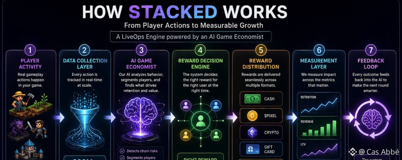 It’s a LiveOps engine. That sounds technical, but let me simplify it. Instead of giving rewards randomly, Stacked decides who should be rewarded, when, and for what action and then measures if it actually worked.