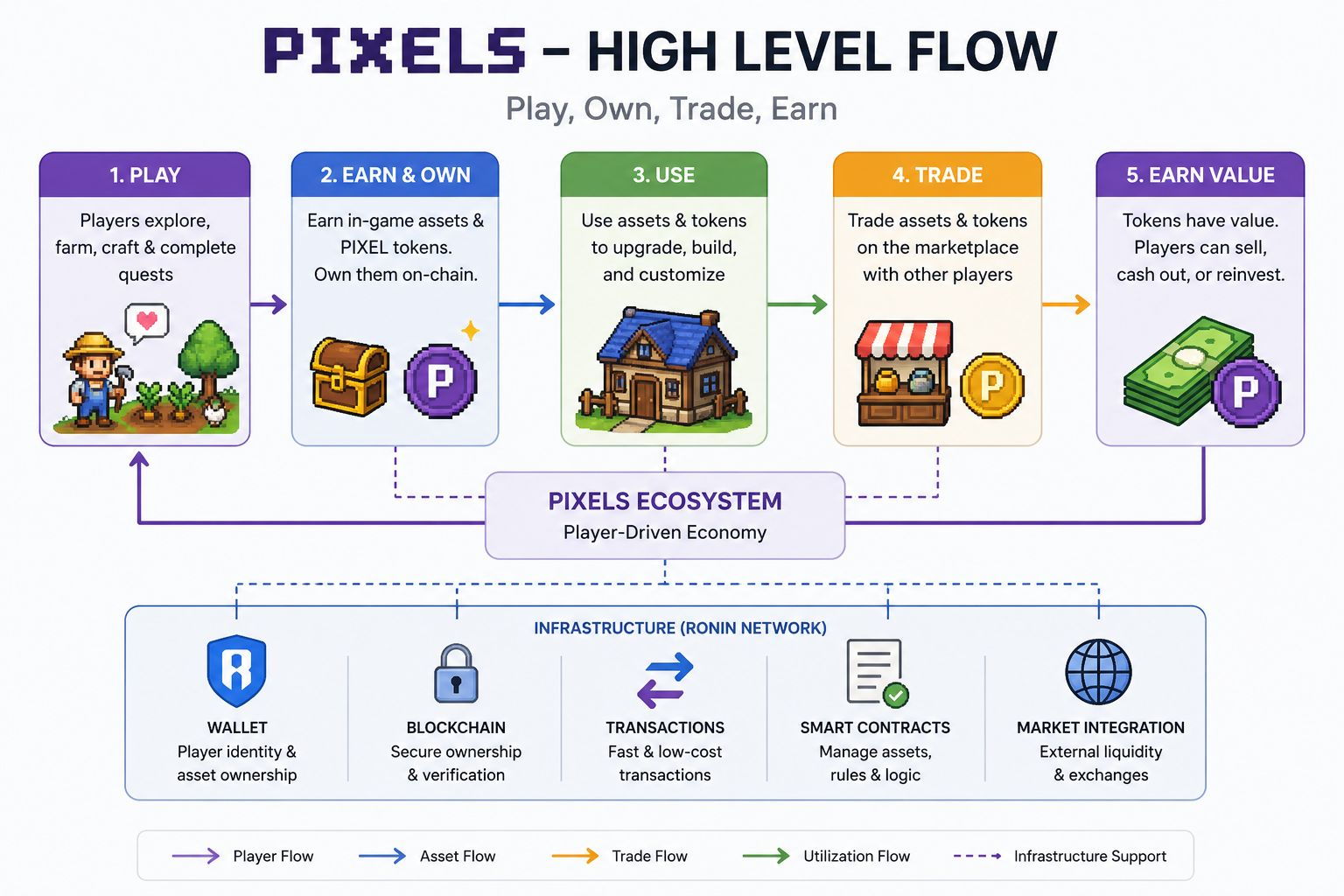 The system underneath Pixels isn’t simple. It can’t be. You’ve got wallets, token flows, asset markets, and on-chain ownership stitched together with off-chain gameplay. The blockchain—Ronin in this case—handles who owns what. The game servers handle everything else. It’s a hybrid setup, which makes sense technically, but it also undercuts the whole “fully decentralized” narrative.