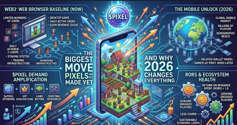 i've been sitting on this for a while — most conversations about pixels focus on what's already live. the staking system, the farming mechanics, the token economics. but there's one thing sitting quietly in the whitepaper that i think changes the entire scale calculation for this ecosystem. core pixels mobile. planned for 2026. and the more i think about what that actually means, the harder it is to overstate.