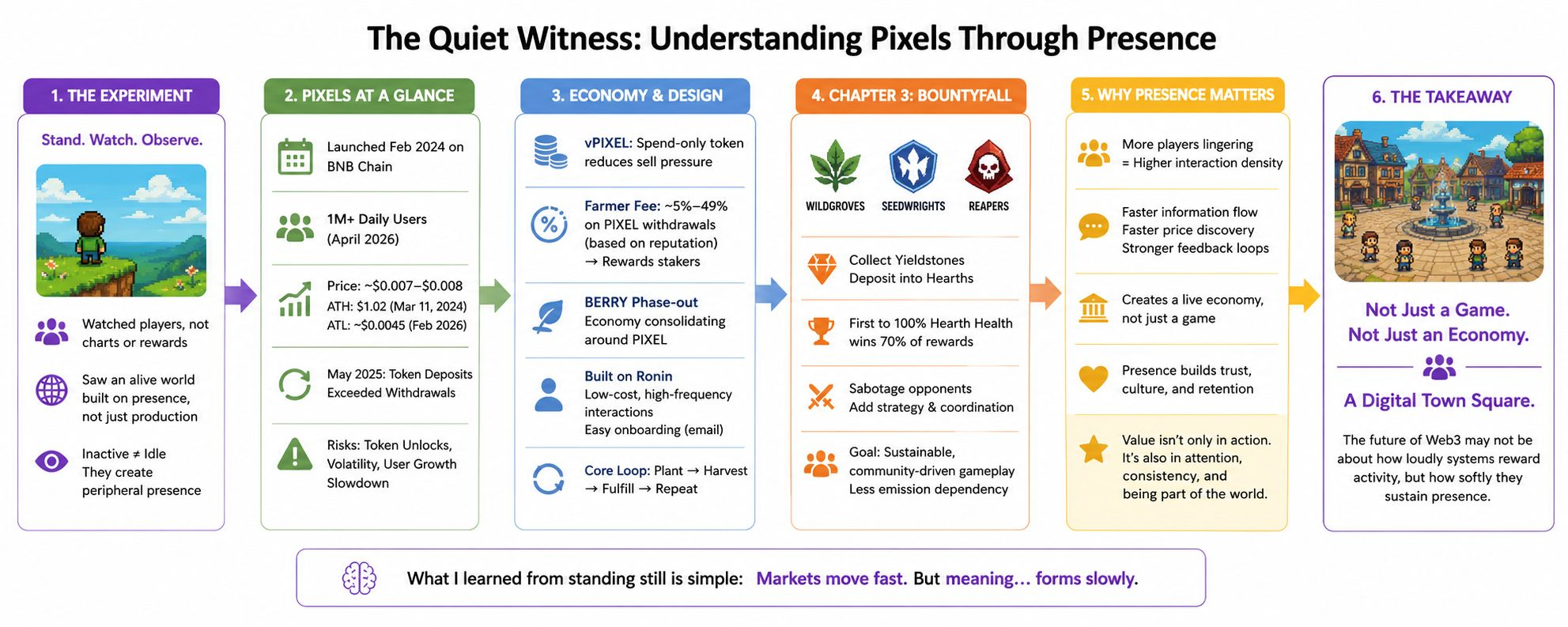 In traditional GameFi models, idle users are considered churn risk. In Pixels, they feel like infrastructure. Like background liquidity but social instead of financial.