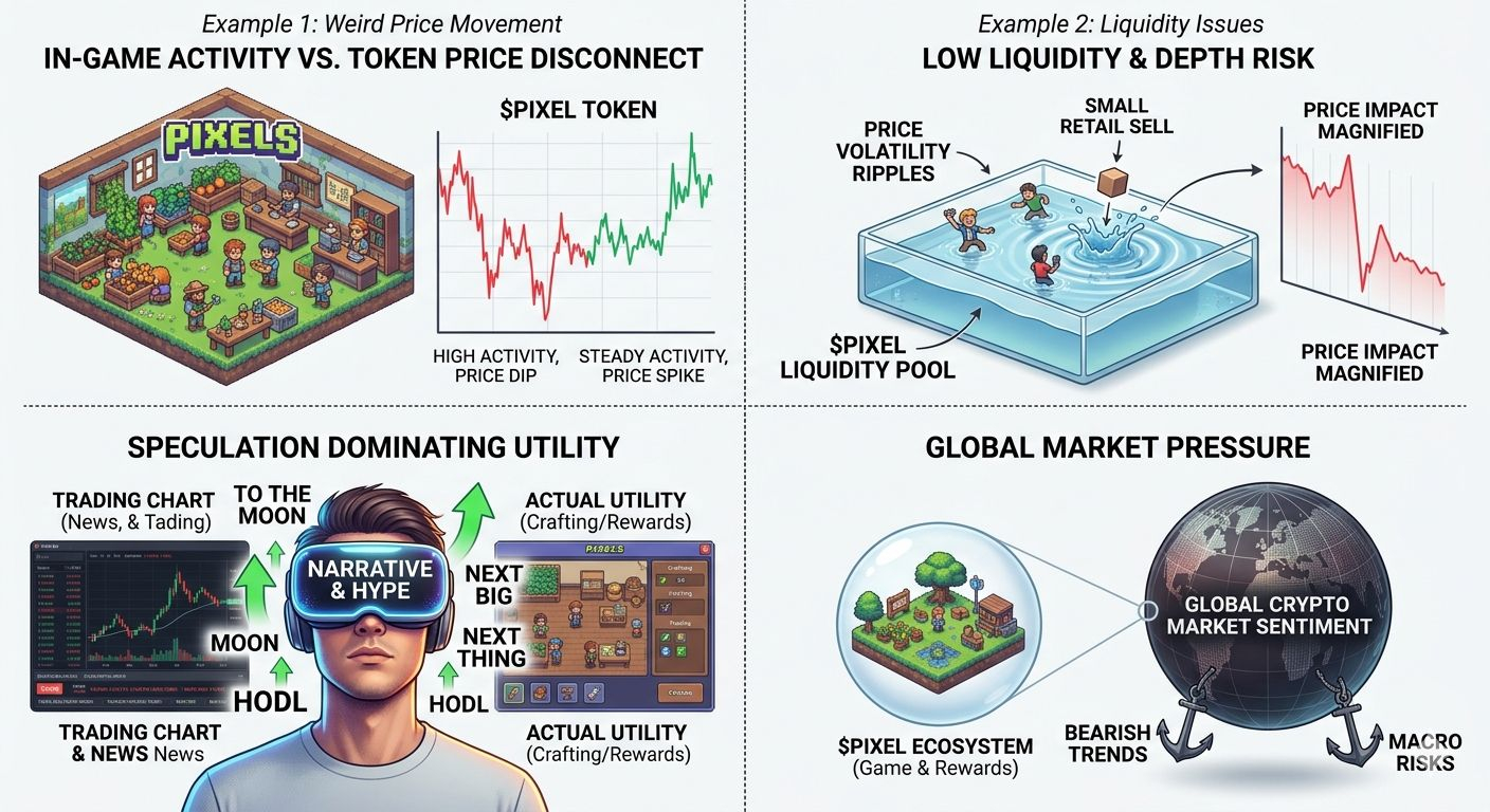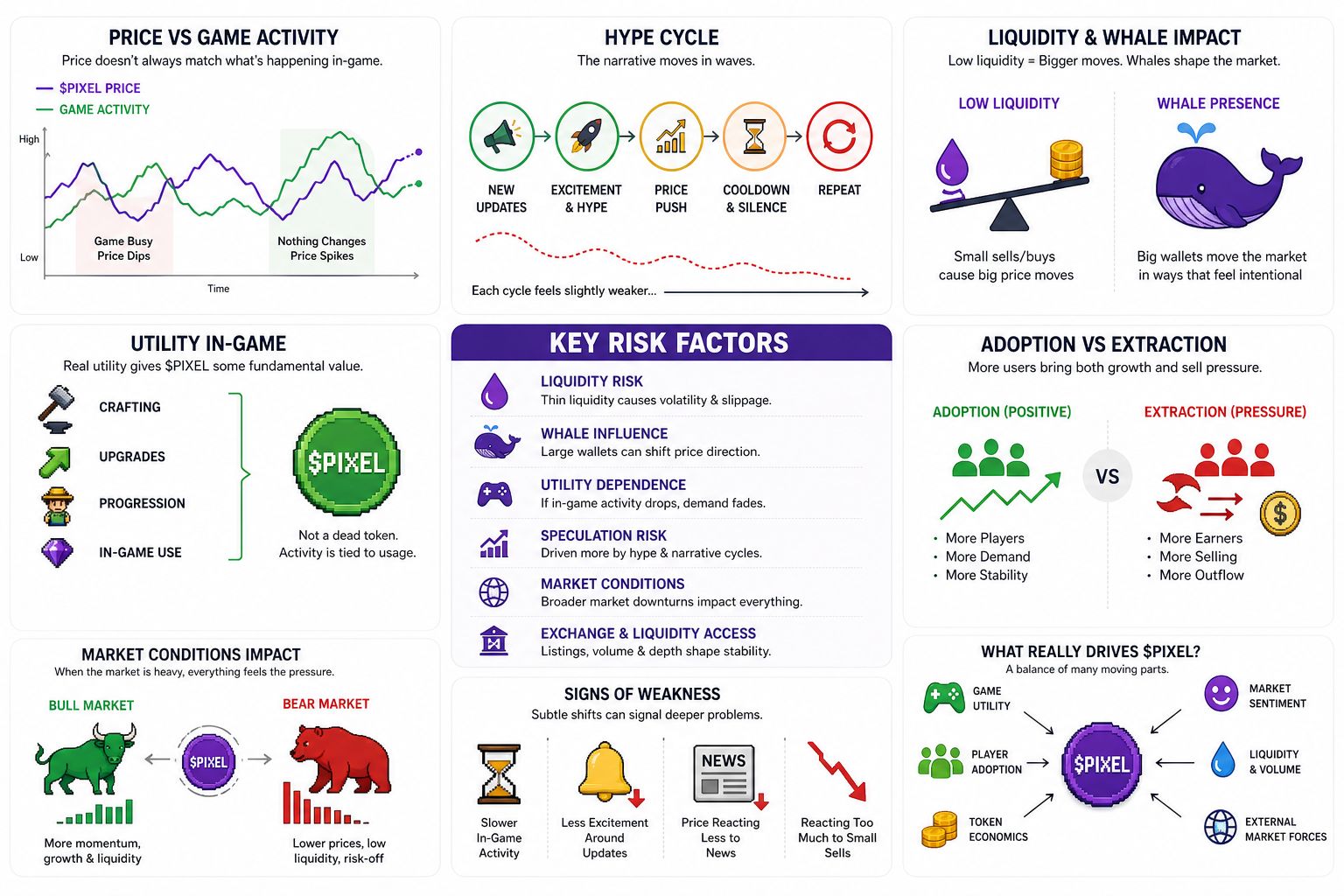 The overall market probably plays a role too. When the market feels heavy everything drags a bit. Even projects that seem active internally don’t escape that pressure. It’s like the game exists in one layer.... The PIXEL token lives in another influenced by things way outside it.