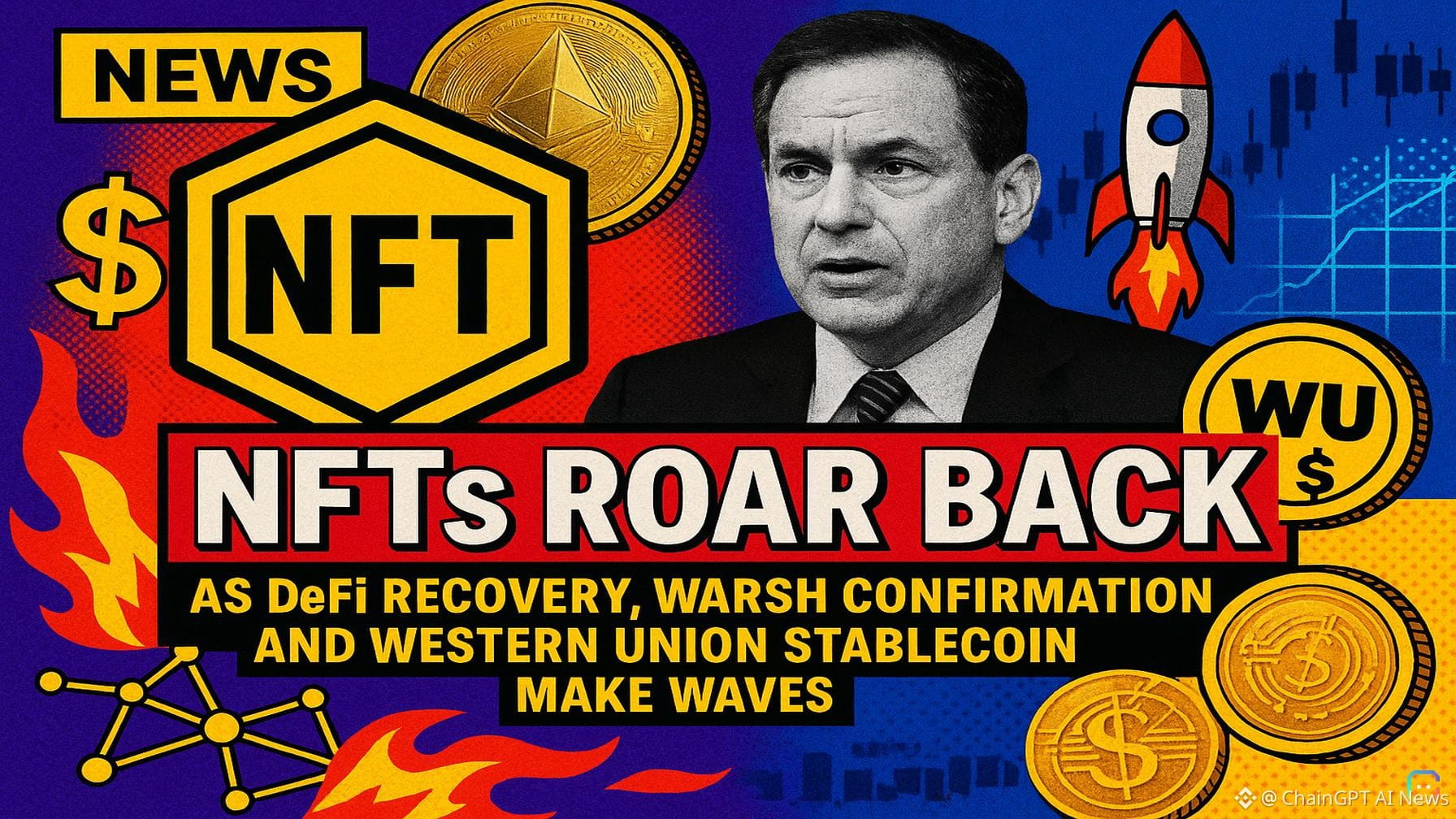 Morning Minute — NFTs roar back as blue-chips lead the charge, while DeFi, regulators and legacy finance make headlines. NFTs: Blue-chip collections log their best week of 2026 - The NFT market posted its strongest weekly performance in months, with nearly every major blue-chip collection rising by double digits. - CryptoPunks climbed to 30.95 ETH (~$72,000), up 16.2% on the week. Bored Apes are back above 9.65 ETH after two headline “grail” sales in 24 hours — a Gold Fur at 121.9 ETH and a Trippy Fur at 49 ETH. - Other notable gains: Azuki +49%, BAKC +50.1%, Azuki Elementals +37.5%, Otherside Koda +32.2%, Meebits +29.3%, MAYC +24.2%. Nouns spiked 284.6%, but that came on just 33 sales and 51 ETH of volume, so interpret that with caution. The lone red: Hypurr (denominated in HYPE), -6.1%. - Bored Apes are the big story this run — up nearly 100% over the past month amid buzz around a new CEO and talk of an IRL clubhouse, which has reignited market energy. - Why now? Many point to the end of marketplace “farming” incentives (OpenSea, Blur, Magic Eden, etc.). Those reward programs encouraged churning and distorted demand for years; with them winding down, true supply-and-demand dynamics are resurfacing — and the market is testing how strong organic demand really is. DeFi: Recovery fund meets target after Aave scare - Six days after the $292 million Kelp DAO exploit threatened Aave, the DeFi United recovery fund hit its target, founder Stani Kulechov announced, saying the fund “has now been reached for the purpose of fully backing rsETH, subject to pending votes, indicative agreements, and successful execution.” - Arkham reported roughly $160–161M raised against about $200M needed. The largest commitments came from Mantle and Aave DAO (combined 55,000 ETH). Key contributors: Stani (5,000 ETH, ~ $11.7M), EtherFi (5,000 ETH), Lido (2,500 ETH), and Golem Foundation (1,000 ETH). Other groups — LayerZero, Ethena, Frax Finance, Ink Foundation — have indicative commitments pending formalization. - A frozen $71.5M of attacker funds held by the Arbitrum Security Council adds another recovery buffer, but using those funds still requires governance approval. - Caveat: governance votes and formal agreements remain, so the situation isn’t fully closed. Still, the worst-case ~$230M bad-debt scenario now appears unlikely. DeFi United was designed to prevent a 15% depeg across rsETH holders that would have left Aave with roughly $124M in unrecoverable bad debt — and for now, it looks like that outcome has been averted. Regulation & politics: DOJ ends Powell probe; Warsh confirmation advances - The Department of Justice has closed its criminal investigation into Fed Chair Jerome Powell and referred the matter to the Fed’s inspector general — clearing the final major hurdle for Kevin Warsh’s Senate confirmation. - The decision prompted Sen. Thom Tillis to lift his hold, and the Senate Banking Committee has scheduled a confirmation vote on Warsh for Wednesday. Powell’s term as Fed chair ends May 15; his governor seat runs through 2028, and he hasn’t said whether he will remain on the board after his chair term expires. - The politics are heated: former President Trump said he’d be “disappointed” if Warsh doesn’t cut rates immediately; Sen. Elizabeth Warren accused the DOJ move of paving the way for a partisan pick. Powell is expected to hold what may be his final post-FOMC press conference on Wednesday. Legacy finance goes crypto: Western Union to launch a Solana stablecoin - Western Union confirmed a US dollar–backed stablecoin, USDPT, will launch in May on Solana. USDPT is issued by Anchorage Digital Bank and backed 1:1 by U.S. dollars. - CEO Devin McGranahan framed the move as an efficiency play: SWIFT is slow and costly, while Solana offers near-instantsettlement with sub-cent fees — attractive for a company that handled 4.5 billion transactions in 2024. - Western Union also plans a Digital Asset Network to connect crypto wallets to its 360,000+ retail payout locations across 200 countries via API, plus a USD Stable Card later in 2026 aimed initially at high-inflation markets like Argentina. McGranahan said the company wants to “own the economics linked to stablecoins” — capturing float, spreads and fees currently going to third-party issuers. Politics meets memecoins: $TRUMP holders flown to Mar-a-Lago - Top holders of the $TRUMP meme token were flown to Mar-a-Lago for a private crypto event. The organizers brought in the top 297 holders; the top 29 attended a private champagne reception with the former president. Notable attendees included Tether CEO Paolo Ardoino, investor Tim Draper and Cathie Wood of ARK Invest. - Trump’s 45-minute keynote touched on crypto policy, AI, the Iran conflict and consumer products. Despite the star power, $TRUMP fell 14% on Saturday and is down nearly 47% year-to-date and over 90% from its January 2025 peak. - Meanwhile, Reuters reported the Trump family has generated more than $1 billion from crypto asset sales, including at least $336 million tied to meme-coin sales in H1 2025 — a reminder of the disconnect between headline-making token launches and long-term holder returns. What to watch next - Will NFT gains sustain now that marketplace farming incentives have faded? - How will Aave governance finalize the DeFi United plan and deploy recovery funds? - Will Warsh’s confirmation reshape markets’ expectations about Fed policy in the near term? - Western Union’s USDPT rollout and payout network will be a key test of incumbent financial players adopting native crypto rails. That’s the morning brief — more updates as these stories develop. Read more AI-generated news on: undefined/news