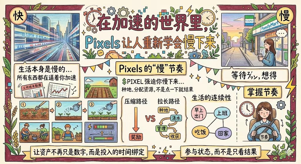 Over time, you start to feel that people are actually pushed along by the rhythm, rather than moving on their own. It’s in this state that I began to reassess @Pixels these slower aspects. $PIXEL At first glance, they aren’t stimulating, and might even seem counterintuitive. Farming, resource allocation, energy management — these aren’t complex tasks, but they require a step-by-step approach, not just a click to finish. Many folks find it tedious, but from another angle, it’s actually forcing you to slow down.