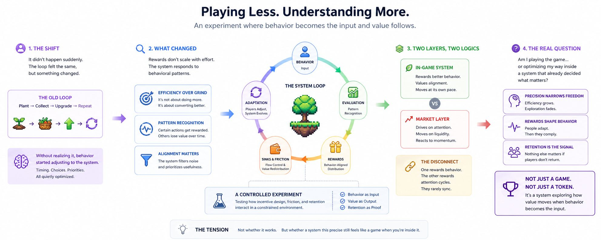 Because the more precisely a system defines “valuable behavior,” the more it narrows what people naturally do. Efficiency increases, but exploration shrinks—the kind of randomness that usually keeps games alive slowly disappears.