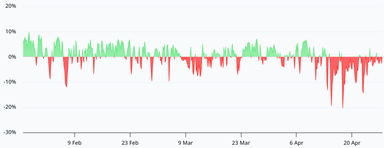 The Bitcoin perpetual futures annualized funding rate has remained mostly negative over the past two weeks, a typical sign of growing bearish confidence. Curiously, this happened while Bitcoin’s price jumped to $78,000 from $72,000 on April 9 and most of those bets are at a loss at $76,700. A rally above $80,000 would likely force traders to close their positions.