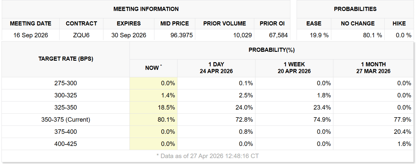 Implied target rate probabilities for Sept. 16 Fed meeting. Source: CME FedWatch tool