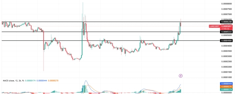 My people, what's going on with Terra Luna Classic is wild: trading volume shot up by 363%, which tells us there are folks coming in with cash in hand and ready to stir the pot. This isn't just an isolated move; it's an aggressive capital influx that pushed the price out of the boring zone at $0.00045 to go straight for testing the resistance at $0.00062. 🚀 But here's where it gets technical and serious: even though the MACD is giving us green signals and the sentiment feels like a party, we're hitting a wall of sellers who historically haven't let LUNC get past that point.