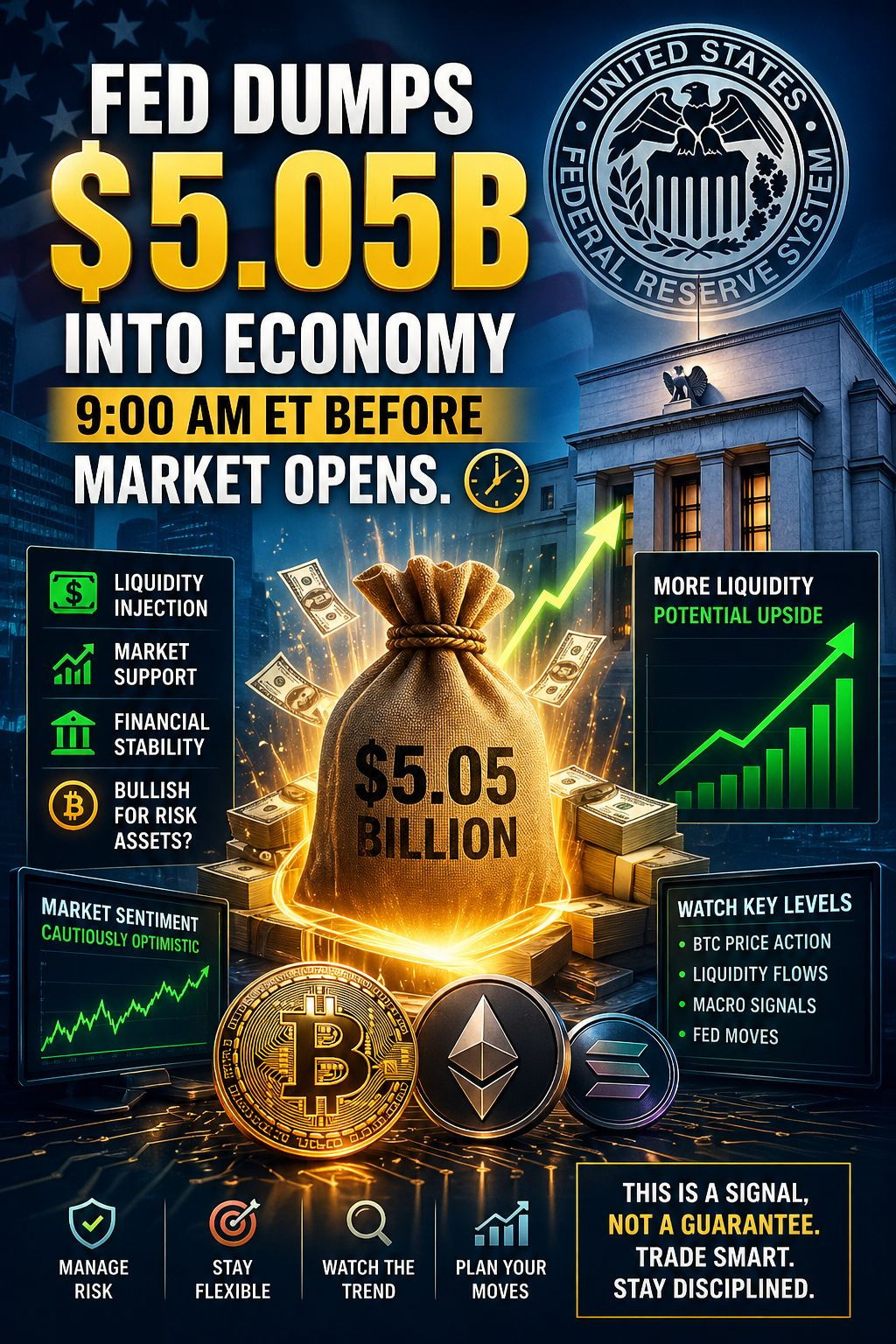 At exactly 9:00 AM ET, before traditional markets even opened, the Federal Reserve quietly injected $5.05 billion into the financial system.
