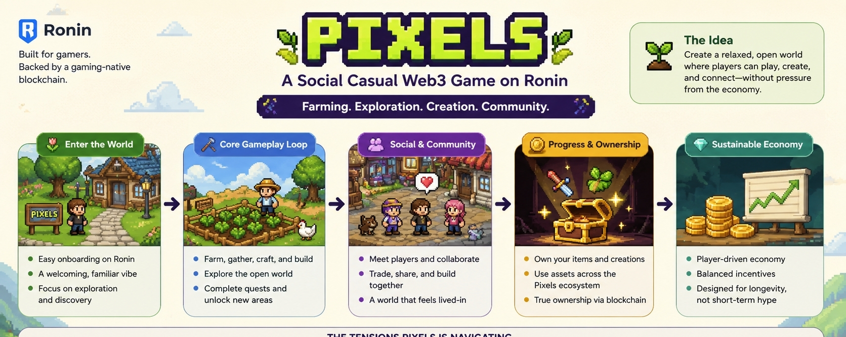Pixels runs on the Ronin Network, and on paper it’s simple: a social, casual Web3 game built around farming, exploration, and creation. But I’ve learned not to take simplicity at face value. Sometimes it’s genuine. Other times it’s just a softer entry point into something much more transactional underneath.