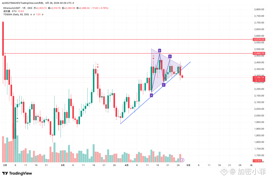 警惕信号:昨日 ETH 日线破位,宣告了维持已久的上升通道终结。
