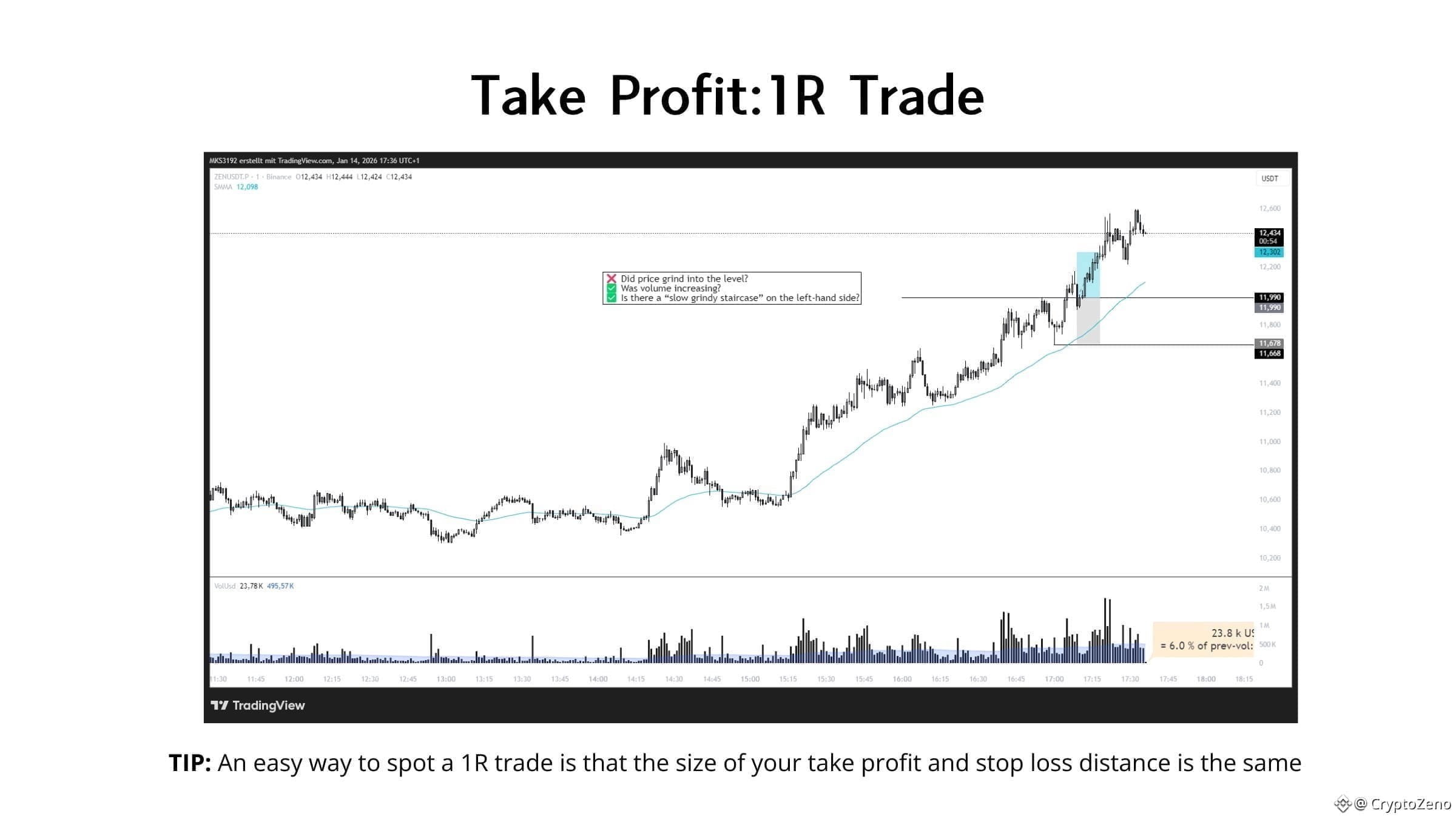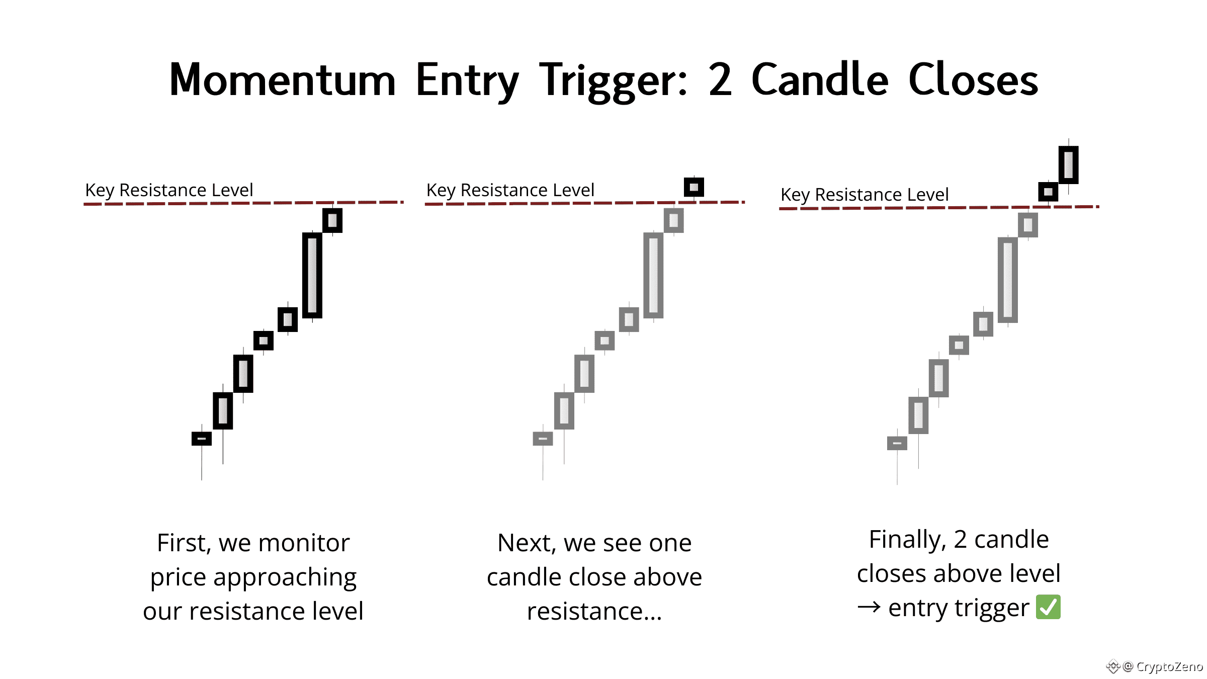 → Do this instead: Take momentum trades when price approaches resistance in a slow, grinding staircase over multiple candles.