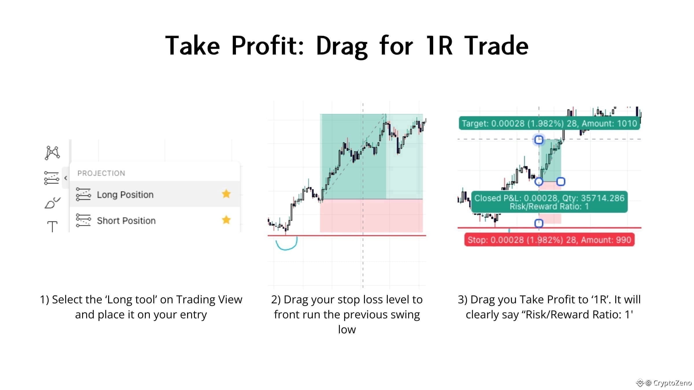 Your take profit target is 1R, the same distance as your stop loss, but in the profit direction