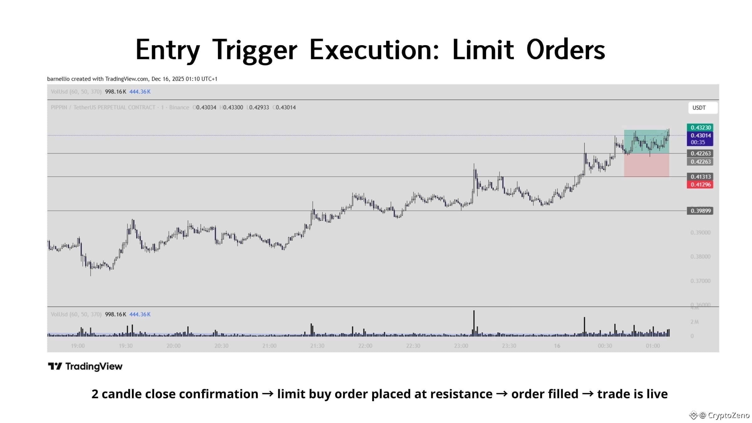 → Do this instead: Preset your limit order AT resistance after the second candle closes. Let price come back to you.