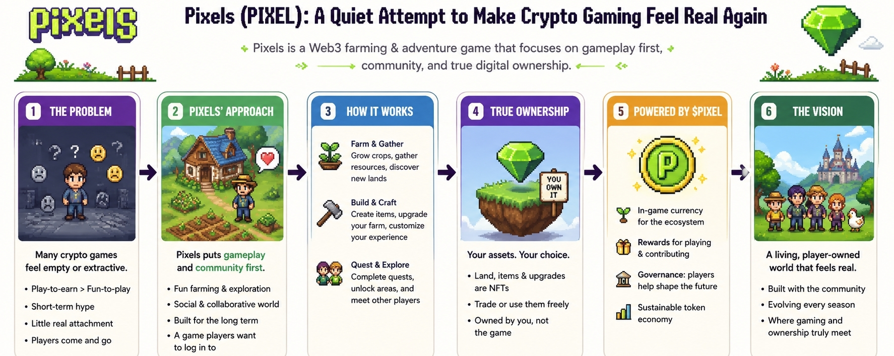 Pixels landed on my radar quietly, almost like background noise at first. A Web3 farming game, social, open world, built on Ronin. If you’ve been around long enough, that description alone feels familiar. We’ve seen games promise digital ownership, player-driven economies, and entire virtual worlds that were supposed to rival traditional gaming. Most of them struggled to keep people around once the early excitement wore off. So naturally, my first reaction wasn’t curiosity—it was hesitation.