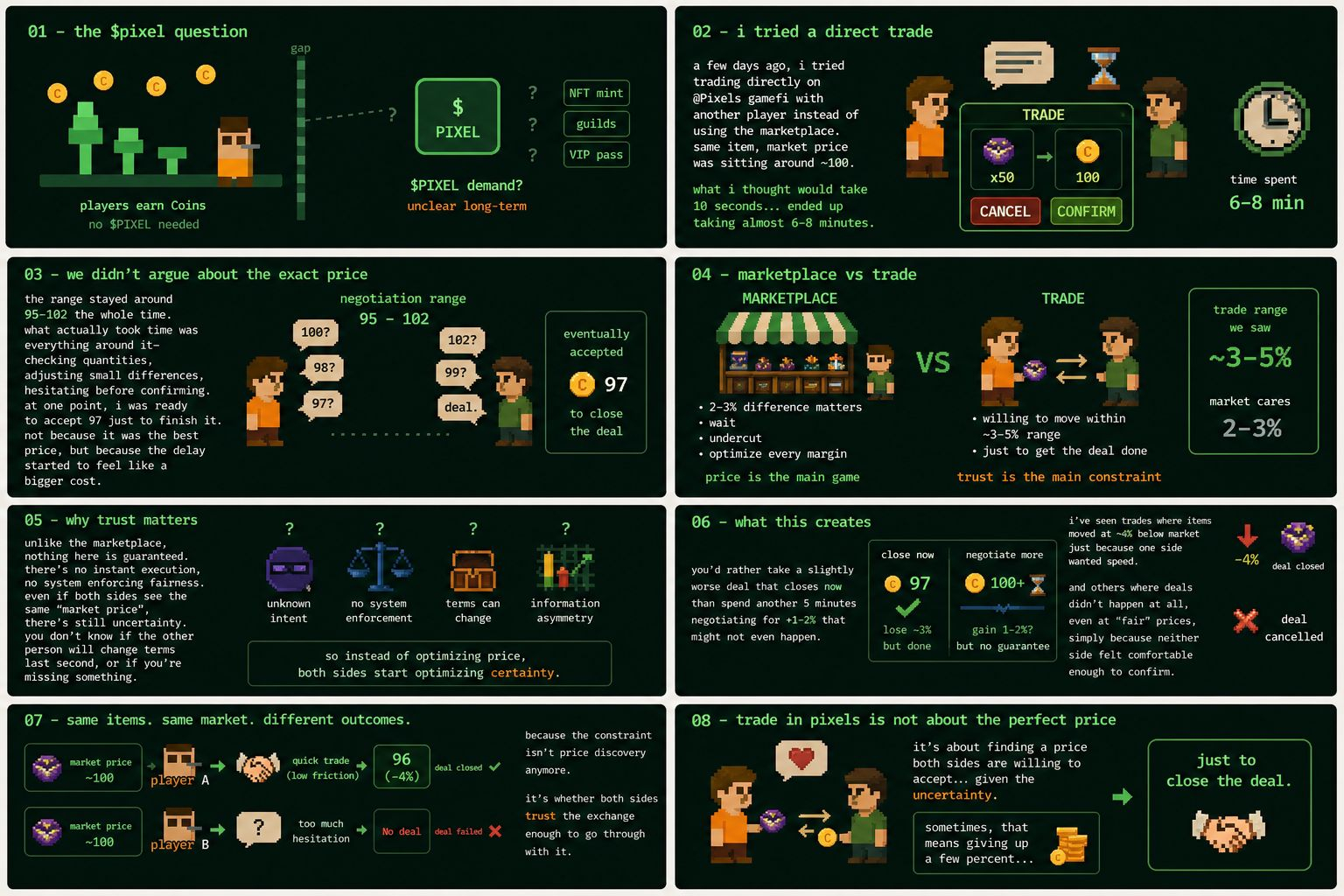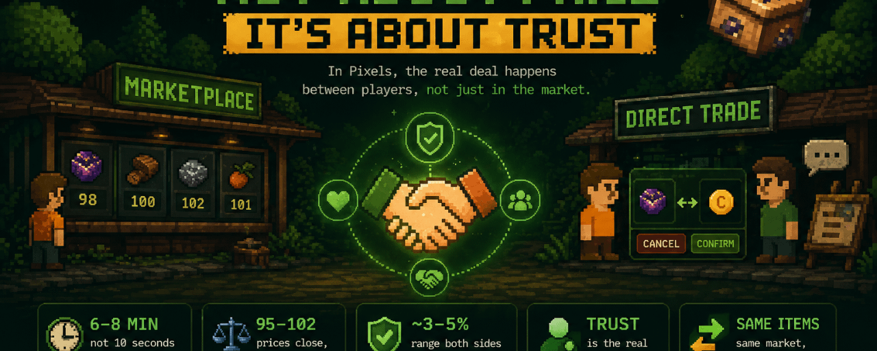 a few days ago, i tried trading directly on @Pixels gamefi with another player instead of using the marketplace. same item, market price was sitting around ~100. nothing special. but instead of listing, we went into a direct trade.
