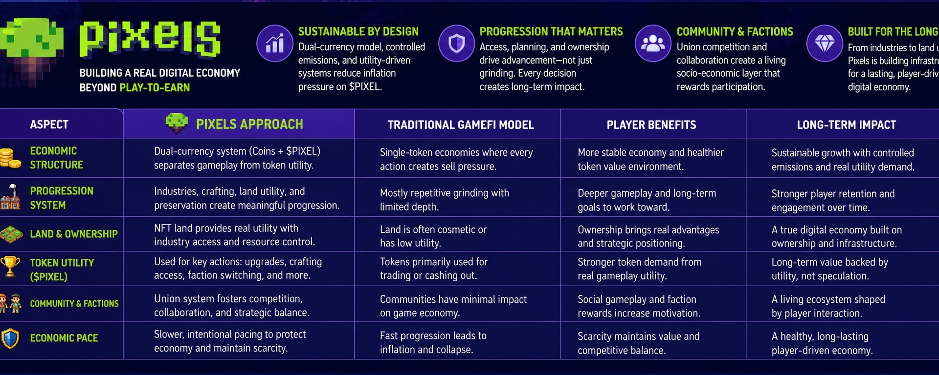 Pixels increasingly feels gameplay-first with economic systems layered underneath.