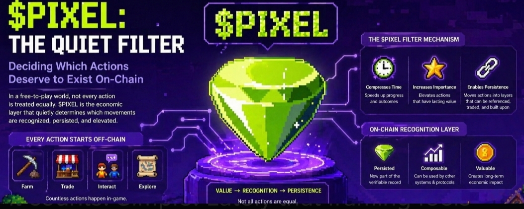 It reminds me a bit of how privacy systems handle data. They don’t reveal everything. They reveal just enough for a specific purpose. The rest stays hidden, or at least uncommitted. Pixels isn’t about privacy in that sense, but the selectivity feels similar. Not every action is worth exposing to the “global state” of the system.