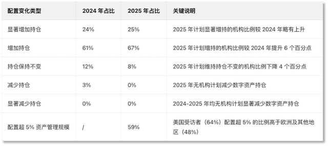 According to the joint report by EY and Coinbase (2025 Institutional Investor Digital Asset Survey), asset management companies, hedge funds, private banks, venture capital funds, family offices, and other influential institutional investors in asset allocation decisions have shown a strong interest in crypto assets. The report indicates that 86% of surveyed institutional investors already have exposure to digital assets and plan to further expand their allocation after 2025.