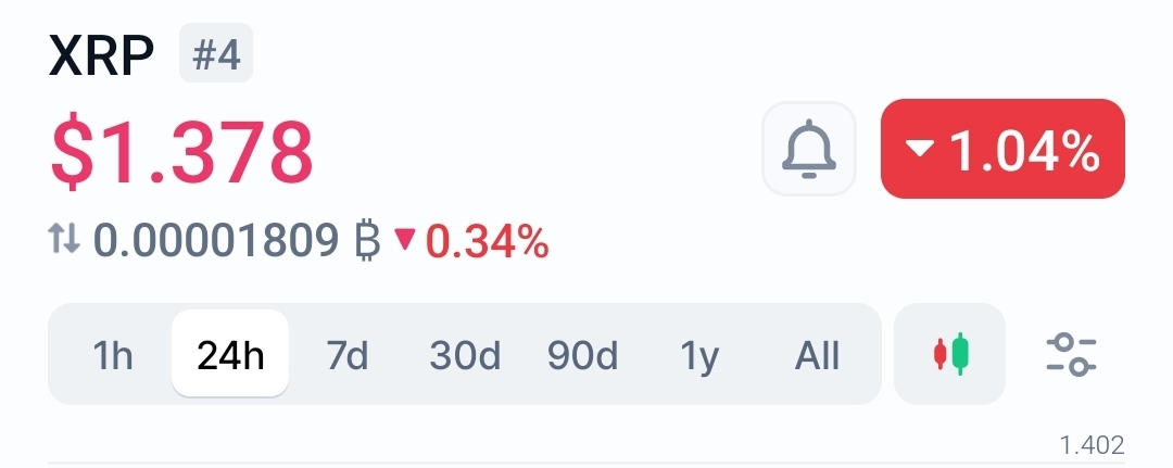 At the same time, ETF and whale data show strong investment-side interest. Spot XRP ETFs have built up around 1.28 to 1.29 billion dollars in cumulative net inflows, with over 70 million dollars added in April and their longest streak without outflows so far this year. Yet XRP trades around 1.40 dollars, with roughly minus 3.21 percent over 24 hours and minus 1.92 percent over seven days, a market cap near 86.22 billion dollars and dominance around 3.35 percent.