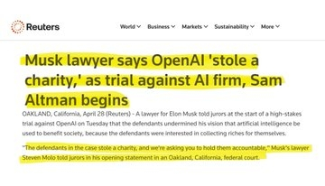 Elon Musk, a co-founder of OpenAI, has taken Altman to court in a high-stakes legal battle that just kicked off in Oakland ⚖️