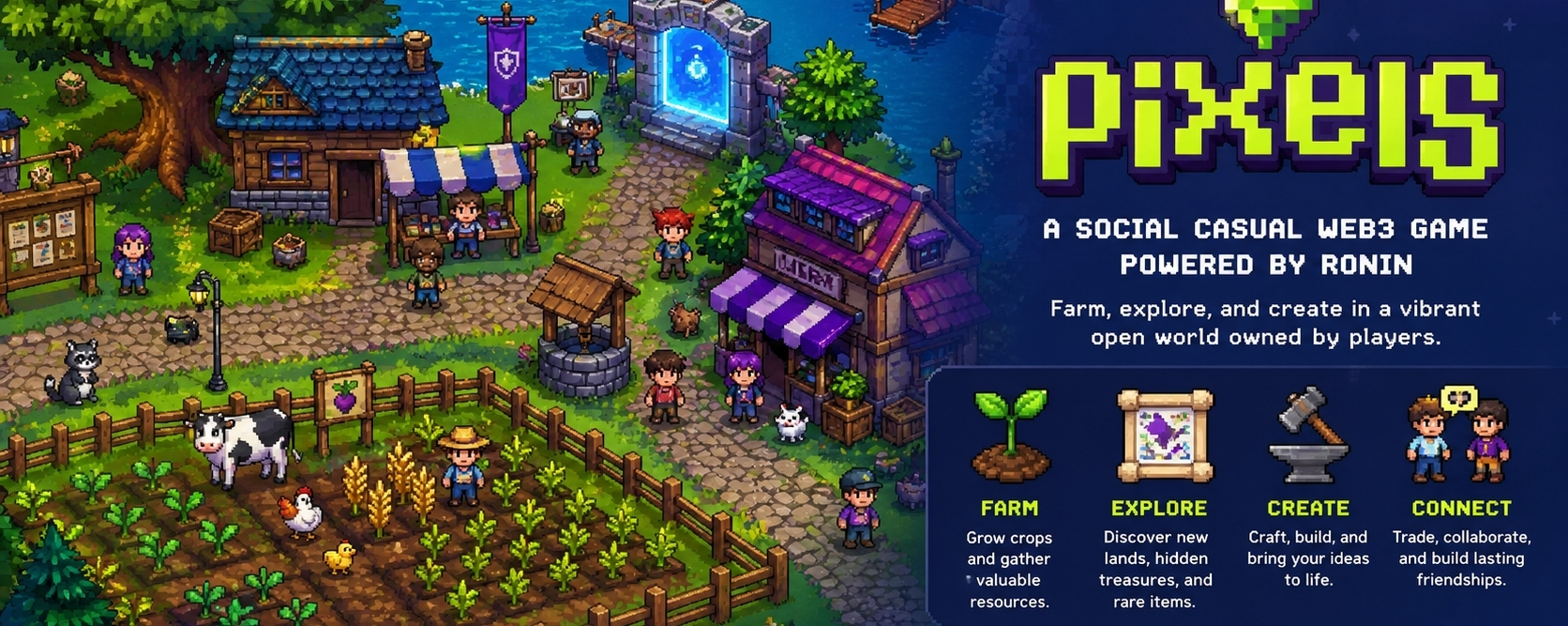 Built on the Ronin Network, Pixels introduces a refreshing take on open-world gaming. At first glance, it may look like a simple farming and exploration game, but beneath that simplicity lies a deeper system designed around player freedom, creativity, and long-term value.