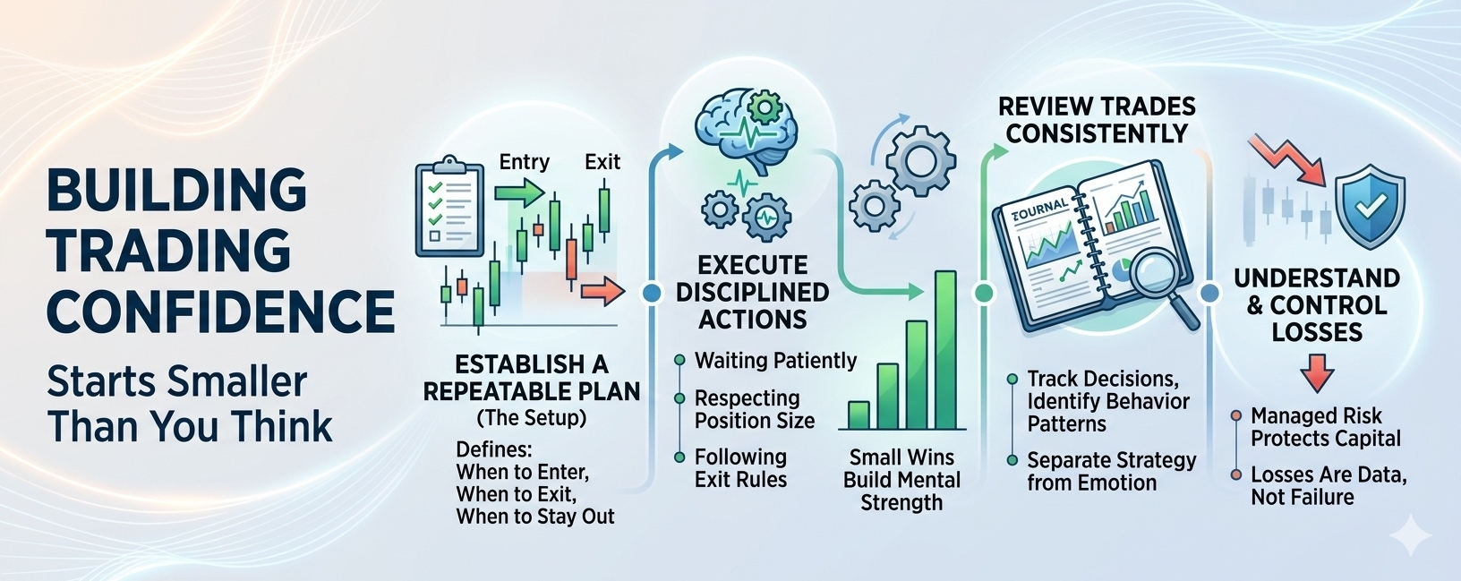Confidence in trading is often misunderstood. Many assume it comes after a series of big wins or a breakthrough moment in the market. In reality, it develops quietly—built through discipline, repetition, and trust in a structured process.