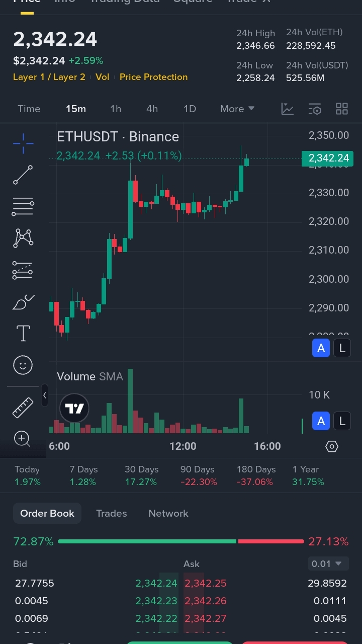 Look at the order book: 72.87% BID vs 27.13% ASK
