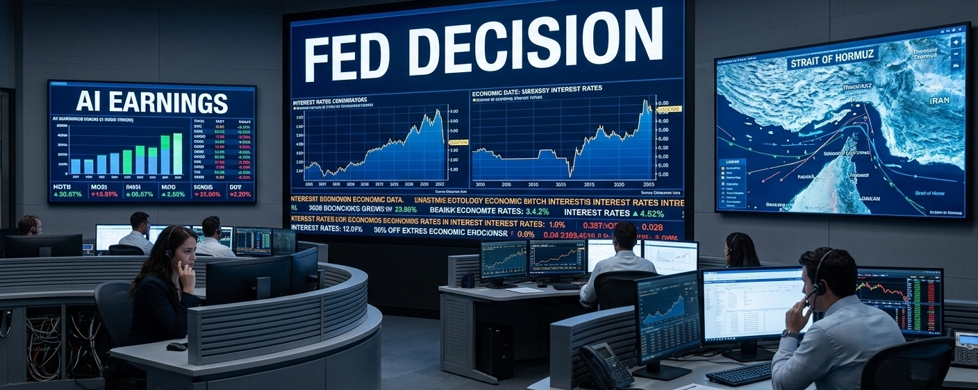 The Federal Reserve is widely expected to hold interest rates steady today, while U.S. naval blockades on Iran continue and Big Tech earnings take center stage.
