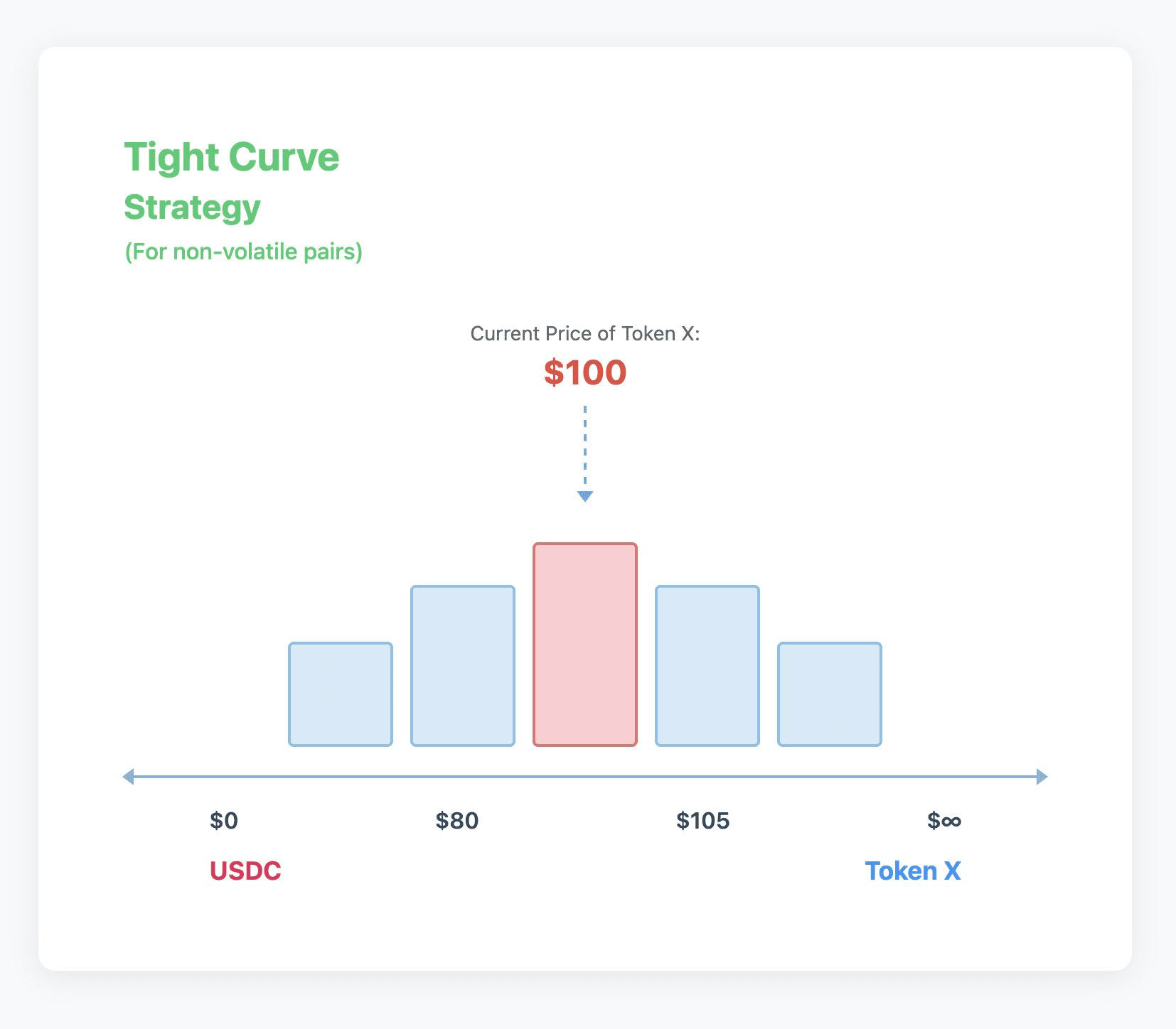 - Curve strategy: Positions concentrated in the middle of the liquidity range, decreasing on both sides, suitable for stablecoin pairs
