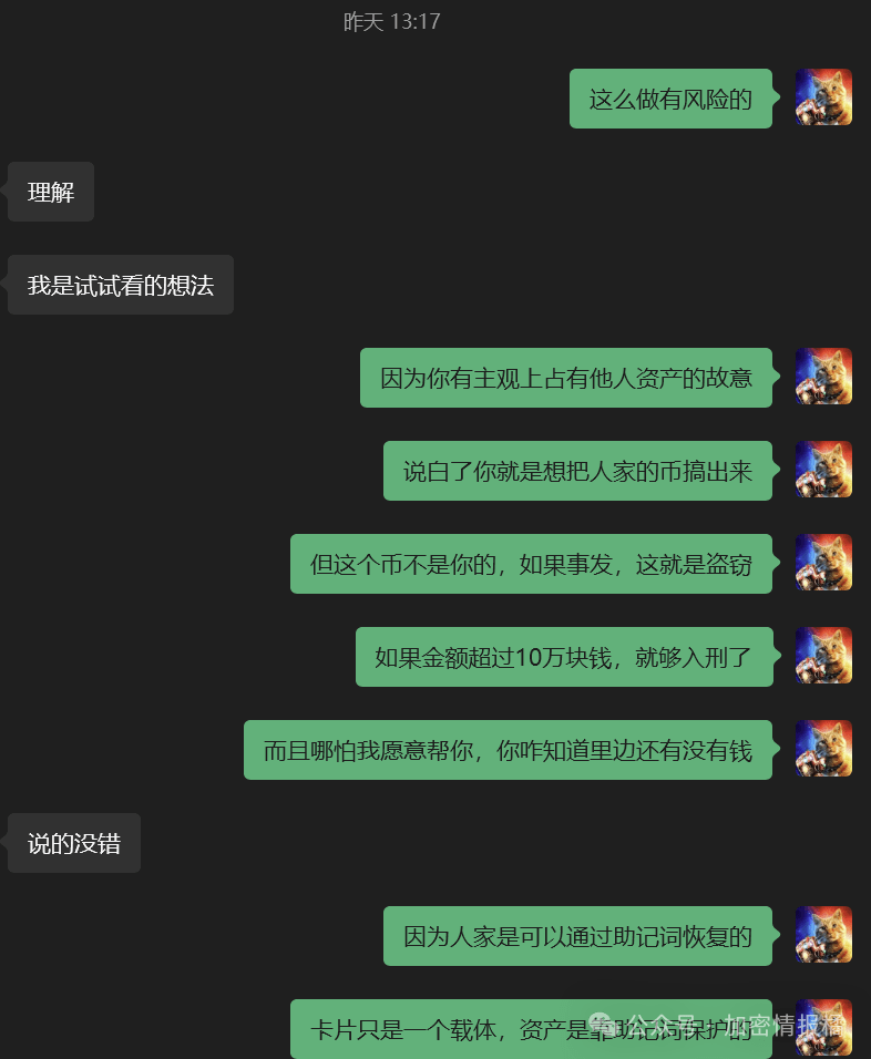 But to make him give up, I still patiently told him that the volume of funds is too small and not worth investing technical resources; moreover, industry insiders are even less likely to let the wallet run naked. If you can find a wallet abandoned by an insider during a move, it is almost an empty wallet because no insider would treat digital assets lightly, as they rely on this for their livelihood.