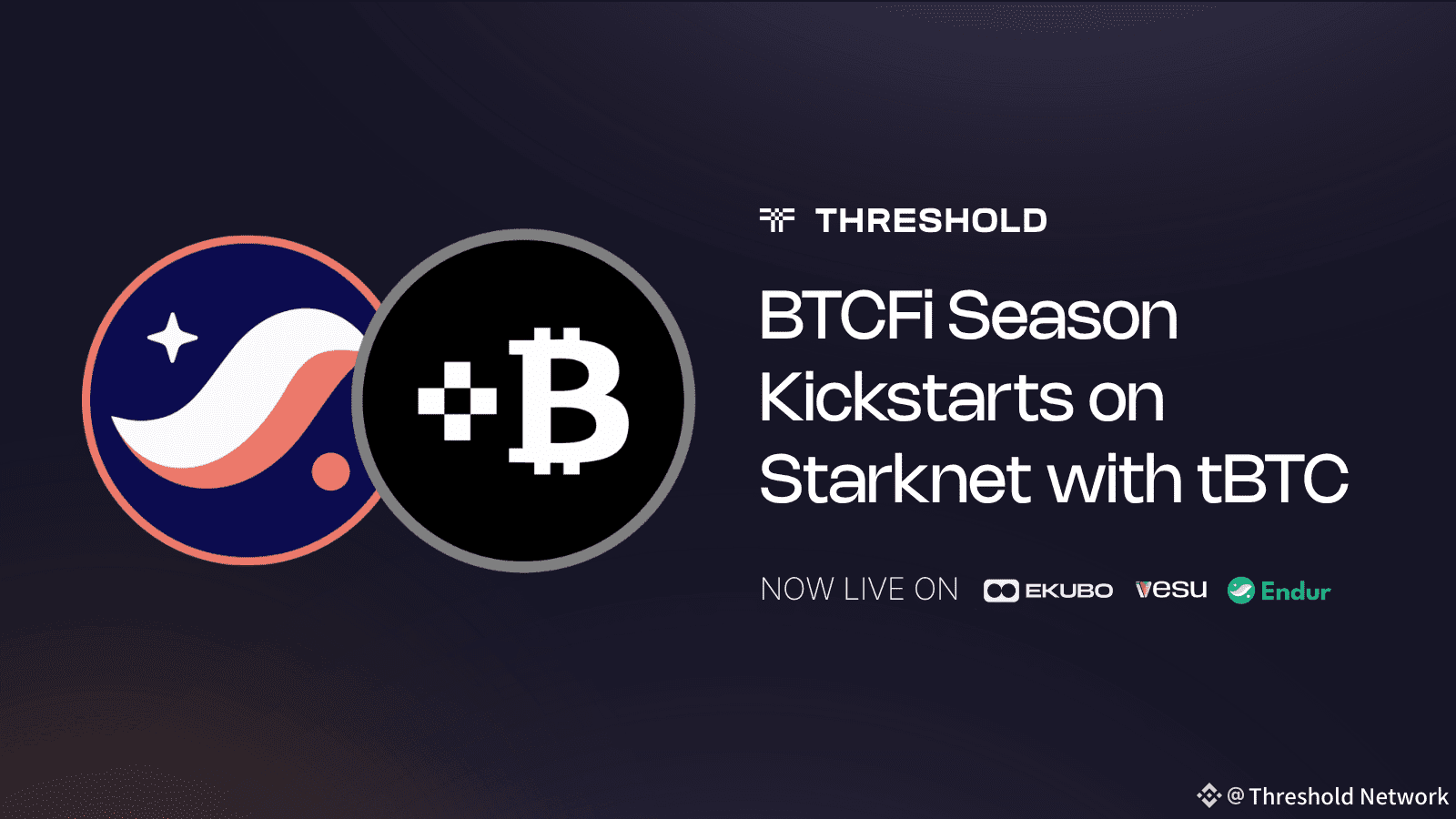 Threshold Network’s tBTC is now one of the key Bitcoin assets supported across Endur.fi, Vesu, Ekubo (in collaboration with 0D, Re7 Labs, and Troves).As part of Starknet’s BTCFi Season, backed by 100M STRK in rewards, these integrations are driving Bitcoin inflows into Starknet’s DeFi ecosystem and offering boosted yields for tBTC participants. Read more