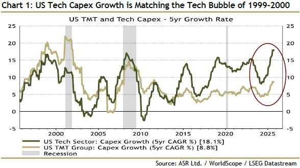 2. Investment in infrastructure by the US tech industry has reached the level of the 2000 internet bubble.