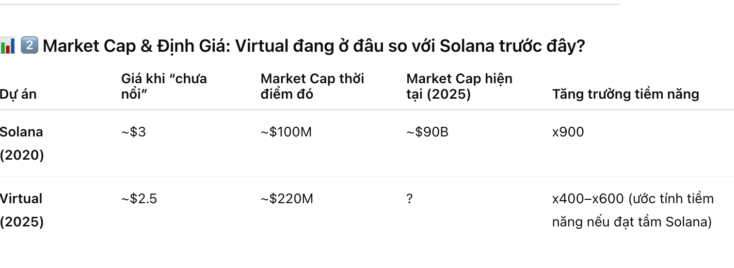📊 2️⃣ Market Cap & Valuation: Where is Virtual compared to Solana in the past?