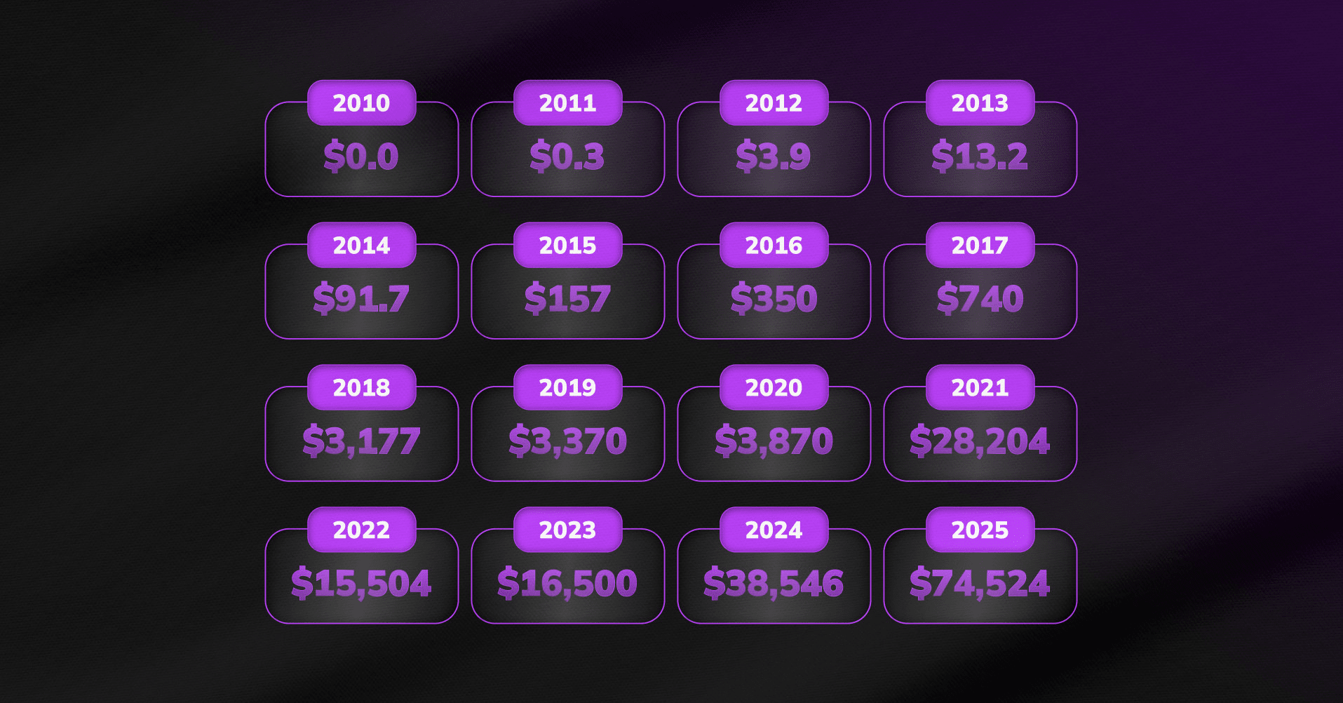 Even more extreme, Bitcoin briefly broke US$126,000, which means an increase of 251,999,900% since it was first introduced by Satoshi Nakamoto.