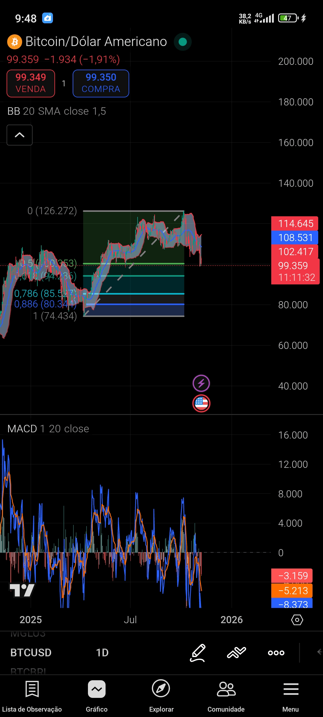 Risk of breaking the psychological support of 100,000 USD, which would open the way for a drop to 94,000-92,500 USD.