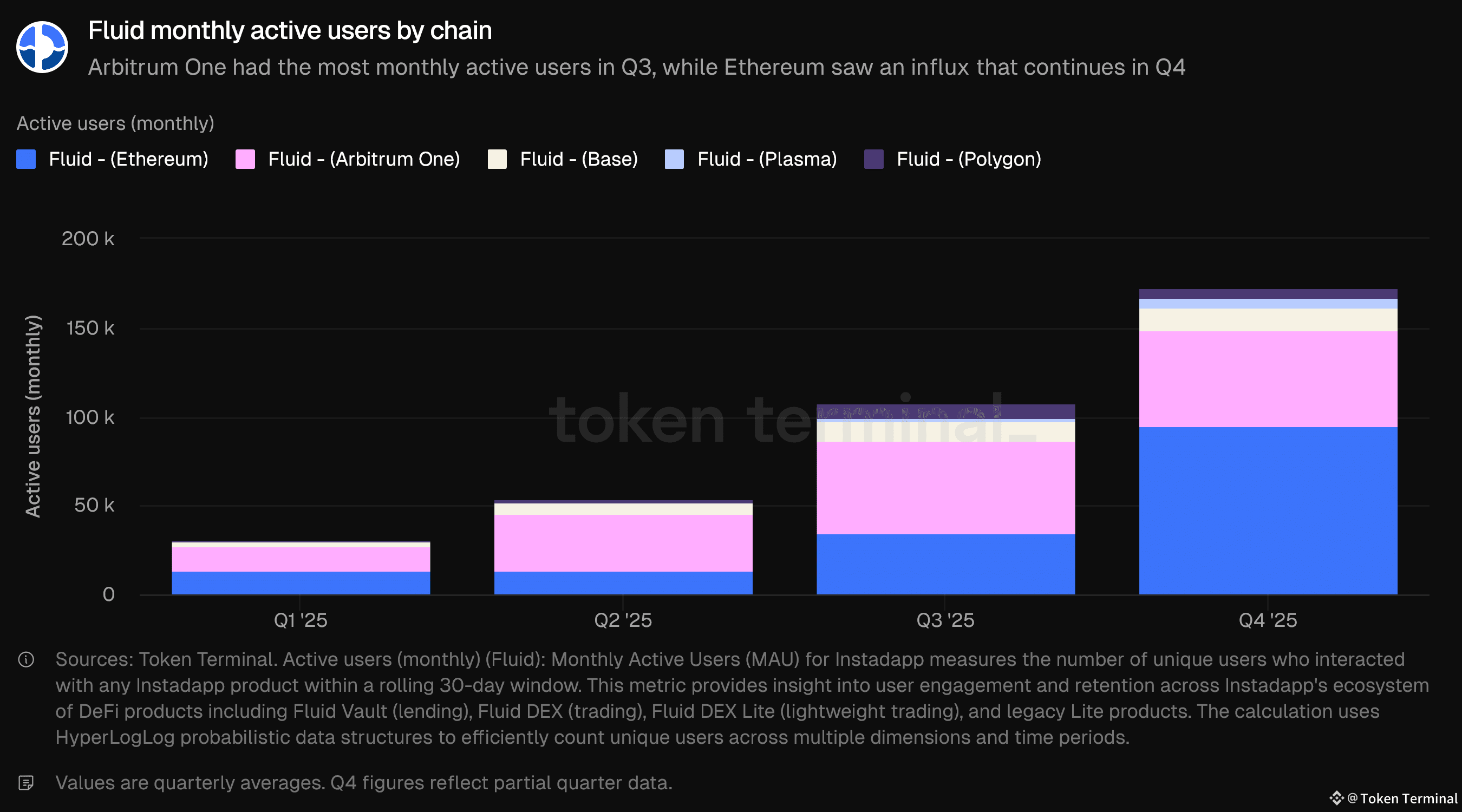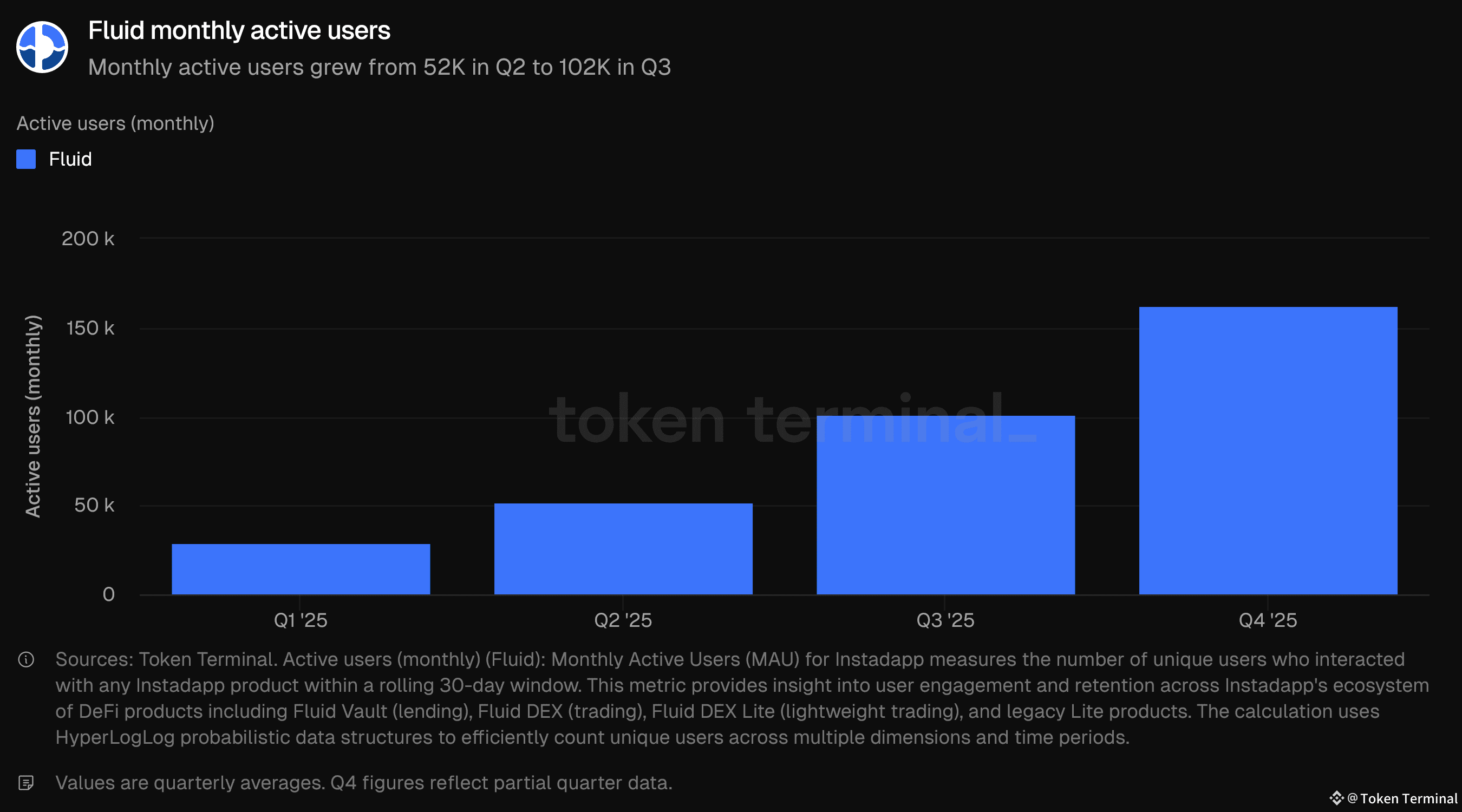 Monthly active users: unique users who interacted with any Fluid product within a 30-day rolling window across all chains.