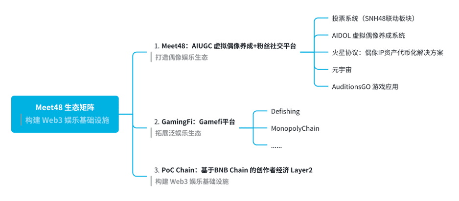 In the past year of proposing and promoting Web3 entertainment, we have been delighted to participate in and witness a number of Web3 entertainment projects, represented by MEET48, actively implementing our envisioned blueprint under our guidance, using BNB's token economic design as a template. The core elements of this blueprint include: