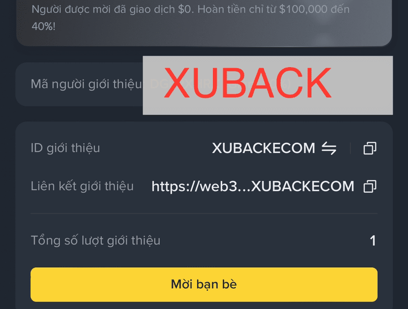 If using XUBACKECOM → get an immediate 1 USDT/transaction + additional bonus at the end of the month.