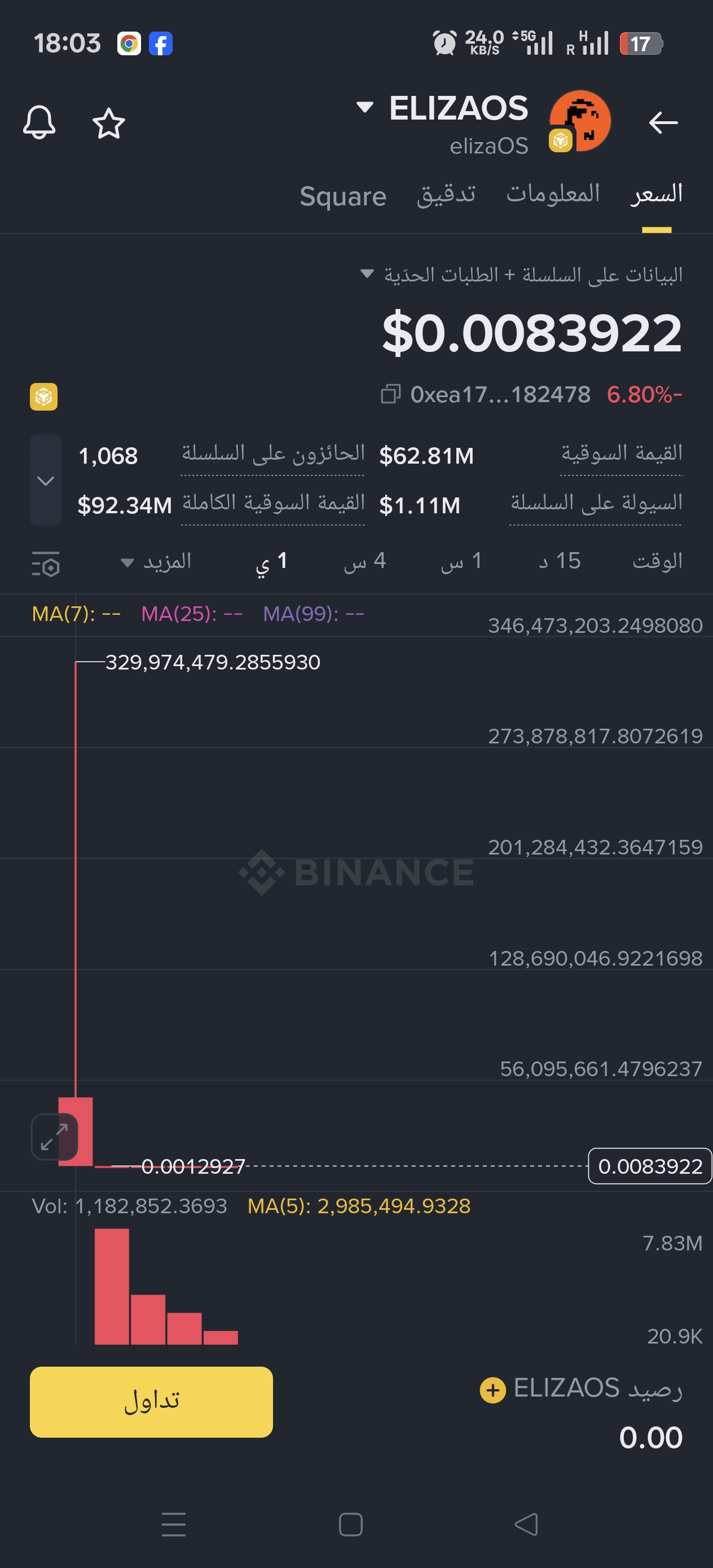 Currency data pages like CoinGecko display the current price of ELIZAOS, trading volume over 24 hours, market cap, and other pieces of live market information. These pages show that the price today is close to ~ $0.008-0.009 with substantial trading volume.