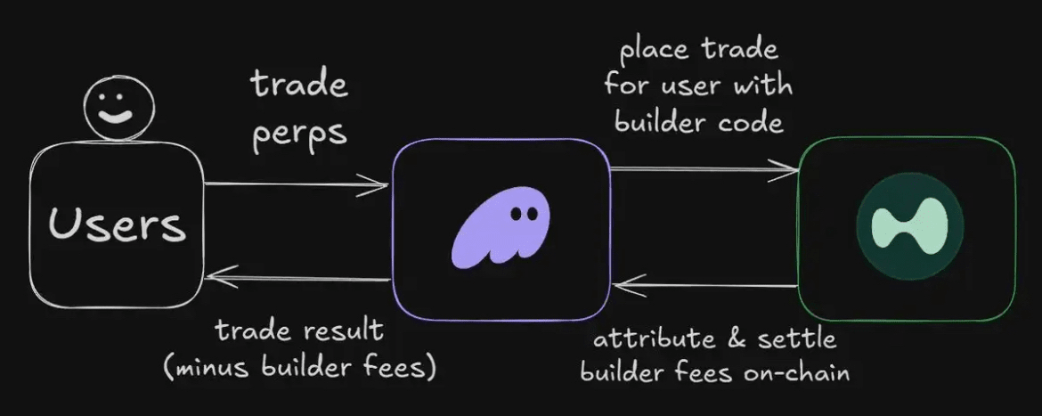 This forms an on-chain attribution system, allowing third-party applications (like trading bots, AI agents, and wallet interfaces) to earn fees for the activity they generate on other platforms.
