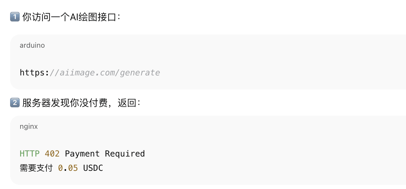 When you visit a website, API, or AI interface, if it requires payment, the website will return status code 402.